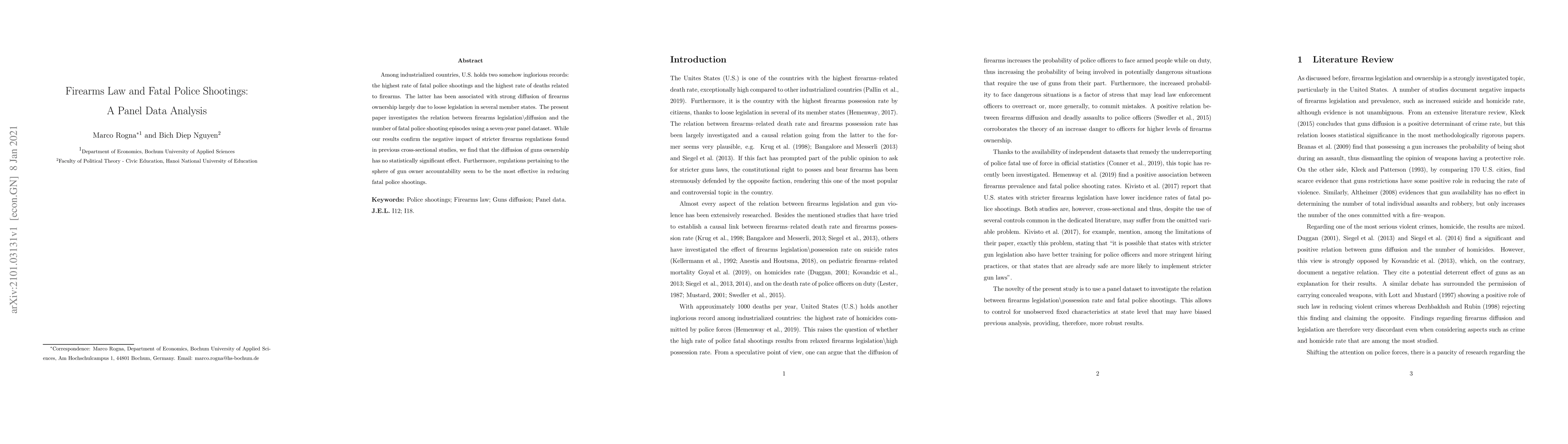 This paper examines the relationship between firearms legislation and fatal police shootings in the U.S. using a seven-year panel dataset. It finds that stricter firearms regulations reduce fatal police shootings, while the diffusion of gun ownership has no significant effect. Effective regulations focus on gun owner accountability.