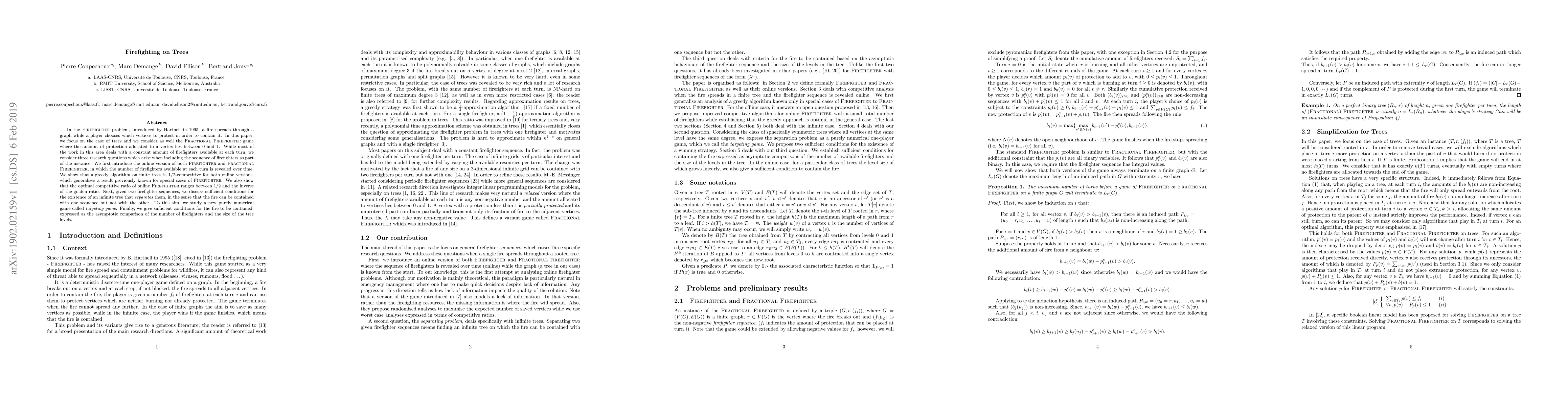 The paper introduces the online versions of Firefighter and Fractional Firefighter problems on trees, proves competitive bounds for a greedy algorithm, and develops a targeting game to analyze the separation of firefighter sequences.