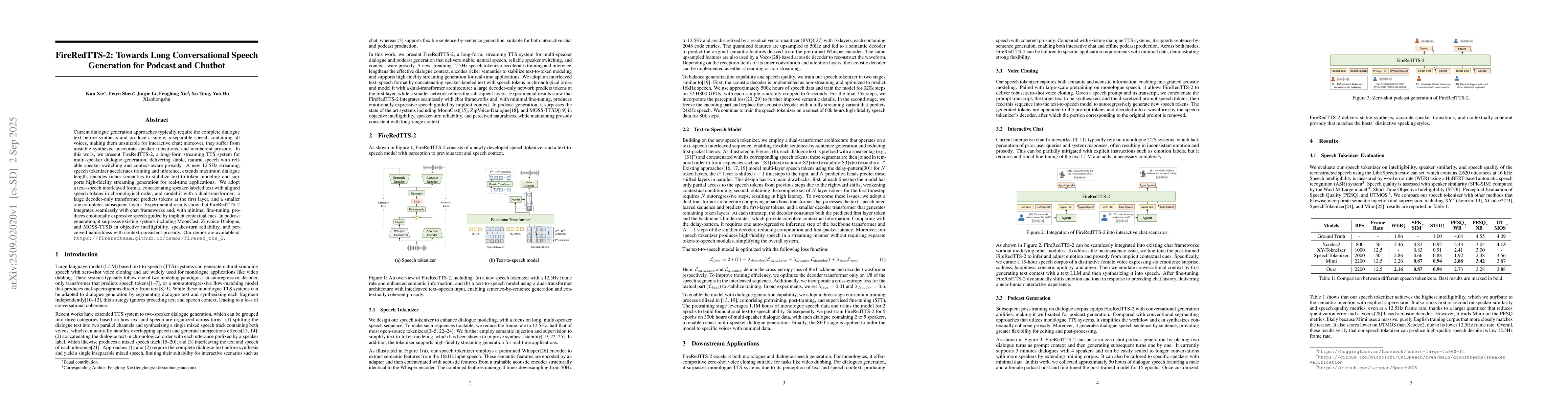 Current dialogue generation approaches typically require the complete dialogue text before synthesis and produce a single, inseparable speech containing all voices, making them unsuitable for interactive chat; moreover, they suffer from unstable synthesis, inaccurate speaker transitions, and incoherent prosody. In this work, we present FireRedTTS-2, a long-form streaming TTS system for multi-speaker dialogue generation, delivering stable, natural speech with reliable speaker switching and context-aware prosody. A new 12.5Hz streaming speech tokenizer accelerates training and inference, extends maximum dialogue length, encodes richer semantics to stabilize text-to-token modeling and supports high-fidelity streaming generation for real-time applications. We adopt a text-speech interleaved format, concatenating speaker-labeled text with aligned speech tokens in chronological order, and model it with a dual-transformer: a large decoder-only transformer predicts tokens at the first layer, and a smaller one completes subsequent layers. Experimental results show that FireRedTTS-2 integrates seamlessly with chat frameworks and, with minimal fine-tuning, produces emotionally expressive speech guided by implicit contextual cues. In podcast generation, it surpasses existing systems including MoonCast, Zipvoice-Dialogue, and MOSS-TTSD in objective intelligibility, speaker-turn reliability, and perceived naturalness with context-consistent prosody. Our demos are available at https://fireredteam.github.io/demos/firered_tts_2.