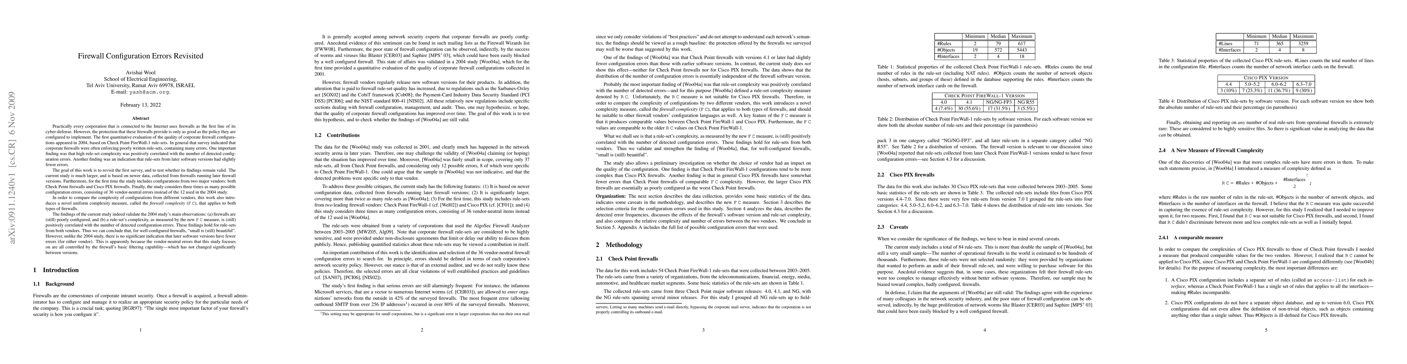 This study revisits a 2004 survey on corporate firewall configurations, finding that firewalls remain poorly configured, with complexity correlating with more detected risks. Unlike the earlier study, it shows no significant improvement in later software versions for two major vendors.