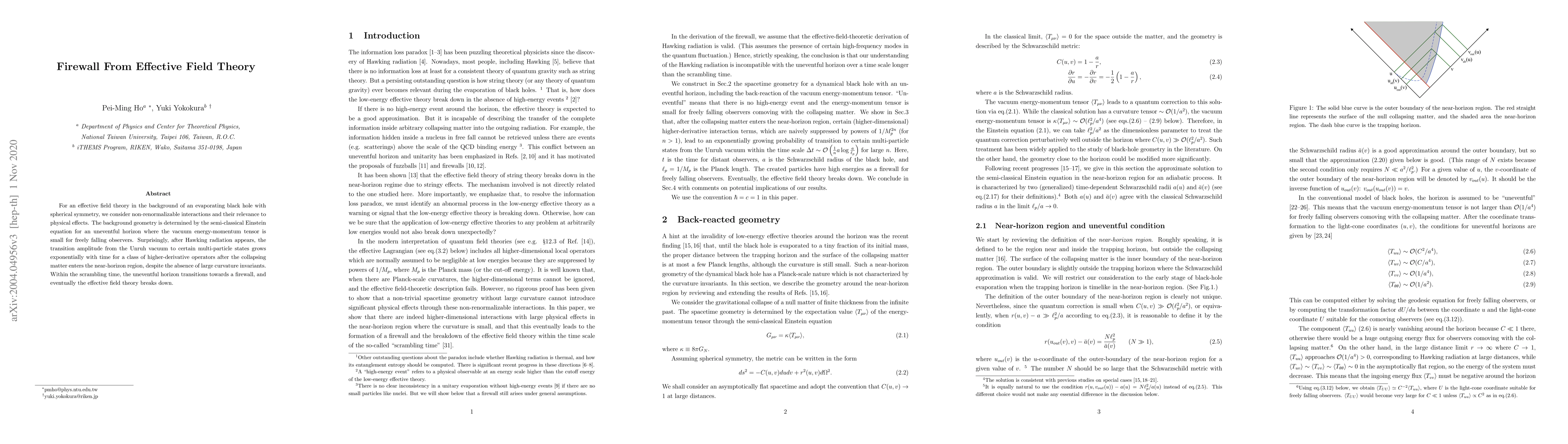 For an effective field theory in the background of an evaporating black hole with spherical symmetry, we consider non-renormalizable interactions and their relevance to physical effects. The background geometry is determined by the semi-classical Einstein equation for an uneventful horizon where the vacuum energy-momentum tensor is small for freely falling observers. Surprisingly, after Hawking radiation appears, the transition amplitude from the Unruh vacuum to certain multi-particle states grows exponentially with time for a class of higher-derivative operators after the collapsing matter enters the near-horizon region, despite the absence of large curvature invariants. Within the scrambling time, the uneventful horizon transitions towards a firewall, and eventually the effective field theory breaks down.