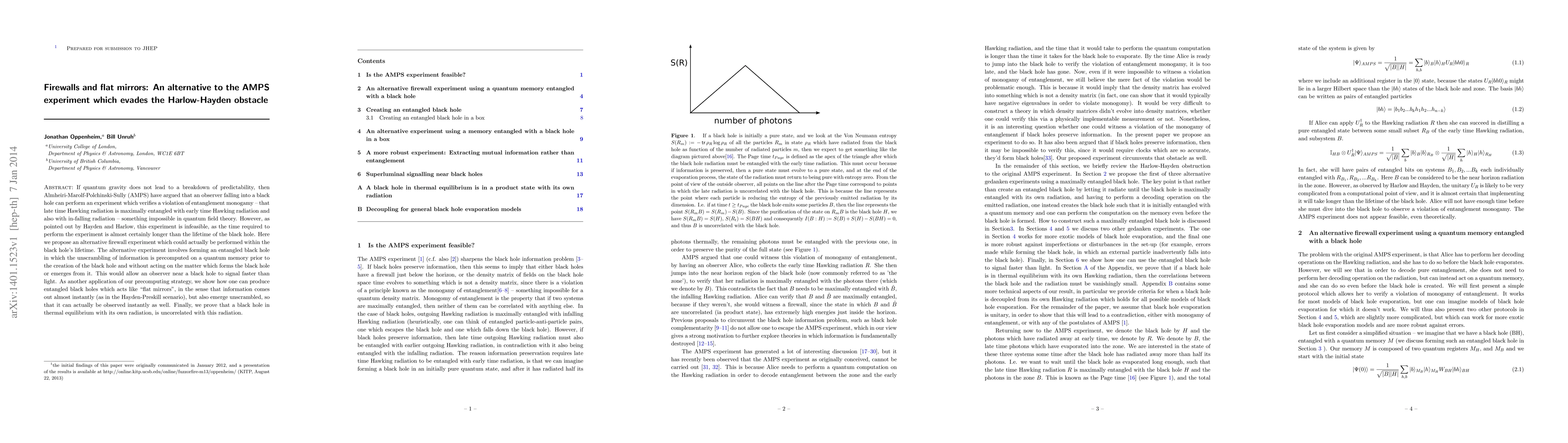 This paper proposes an alternative to the AMPS experiment for testing quantum gravity, circumventing the Harlow-Hayden obstacle by suggesting a feasible experiment within a black hole's lifetime. The proposed experiment involves precomputing information on a quantum memory to allow faster-than-light signaling near a black hole, and creating "flat mirrors" that instantly reflect unscrambled information.