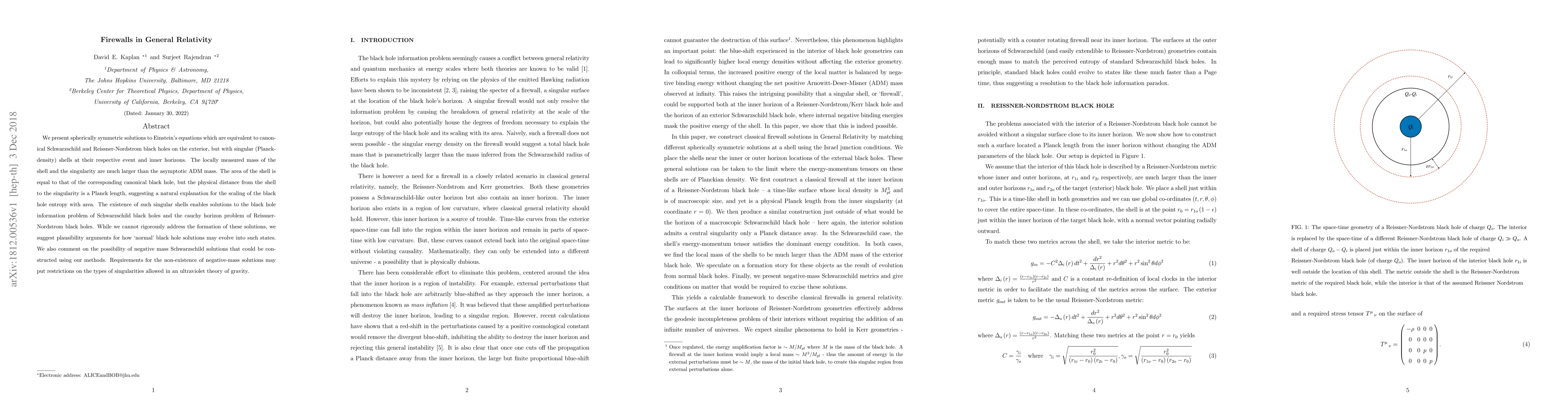 We present spherically symmetric solutions to Einstein's equations which are equivalent to canonical Schwarzschild and Reissner-Nordstrom black holes on the exterior, but with singular (Planck-density) shells at their respective event and inner horizons. The locally measured mass of the shell and the singularity are much larger than the asymptotic ADM mass. The area of the shell is equal to that of the corresponding canonical black hole, but the physical distance from the shell to the singularity is a Planck length, suggesting a natural explanation for the scaling of the black hole entropy with area. The existence of such singular shells enables solutions to the black hole information problem of Schwarzschild black holes and the Cauchy horizon problem of Reissner-Nordstrom black holes. While we cannot rigorously address the formation of these solutions, we suggest plausibility arguments for how normal black hole solutions may evolve into such states. We also comment on the possibility of negative mass Schwarzschild solutions that could be constructed using our methods. Requirements for the non-existence of negative-mass solutions may put restrictions on the types of singularities allowed in an ultraviolet theory of gravity.