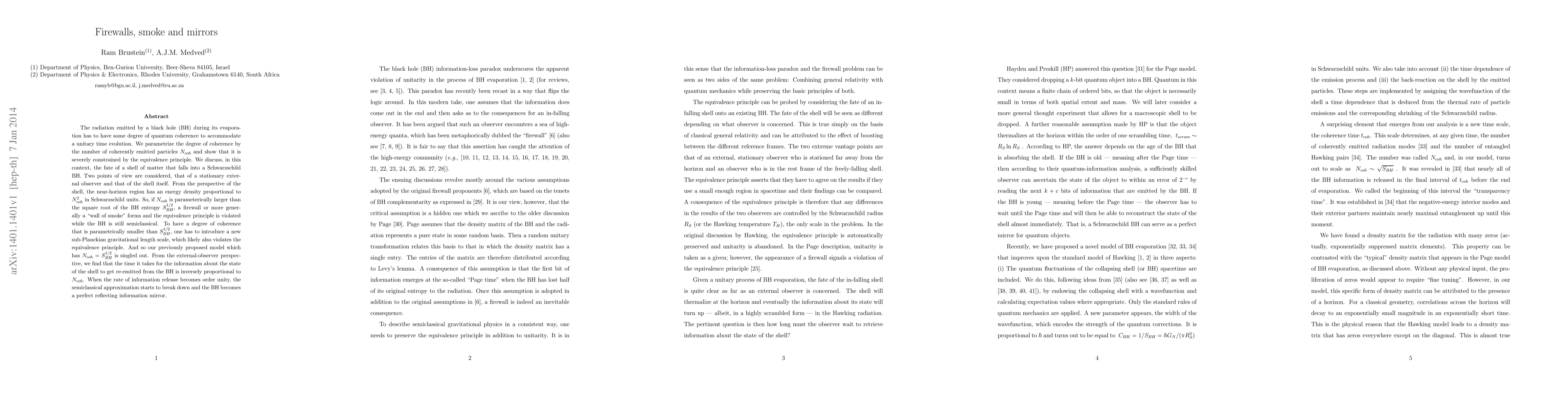 The radiation emitted by a black hole (BH) during its evaporation has to have some degree of quantum coherence to accommodate a unitary time evolution. We parametrize the degree of coherence by the number of coherently emitted particles $N_{coh}$ and show that it is severely constrained by the equivalence principle. We discuss, in this context, the fate of a shell of matter that falls into a Schwarzschild BH. Two points of view are considered, that of a stationary external observer and that of the shell itself. From the perspective of the shell, the near-horizon region has an energy density proportional to $N_{coh}^2$ in Schwarzschild units. So, if $N_{coh}$ is parameterically larger than the square root of the BH entropy $S_{BH}^ {1/2}$, a firewall or more generally a "wall of smoke" forms and the equivalence principle is violated while the BH is still semiclassical. To have a degree of coherence that is parametrically smaller than $S_{BH}^{1/2}$, one has to introduce a new sub-Planckian gravitational length scale, which likely also violates the equivalence principle. And so our previously proposed model which has $N_{coh}=S_{BH}^{1/2}$ is singled out. From the external-observer perspective, we find that the time it takes for the information about the state of the shell to get re-emitted from the BH is inversely proportional to $N_{coh}$. When the rate of information release becomes order unity, the semiclassical approximation starts to break down and the BH becomes a perfect reflecting information mirror.