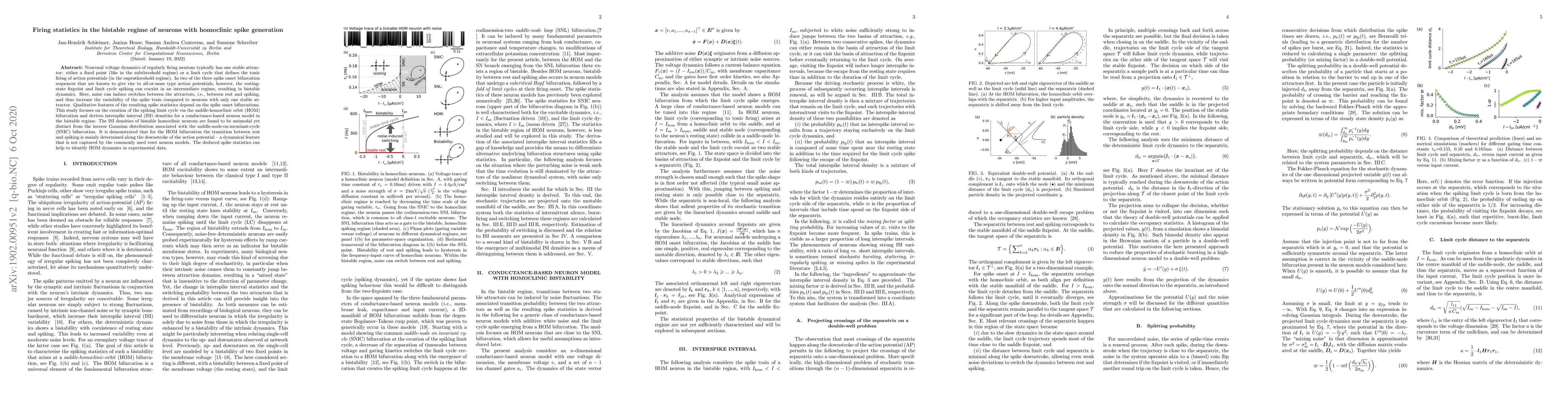 This study investigates the firing statistics of neurons in a bistable regime characterized by homoclinic spike generation, revealing distinct interspike interval densities compared to those from the saddle-node-on-invariant-cycle bifurcation. The findings highlight the unique dynamics of the downstroke in action potentials, offering insights for identifying such dynamics in experimental data.