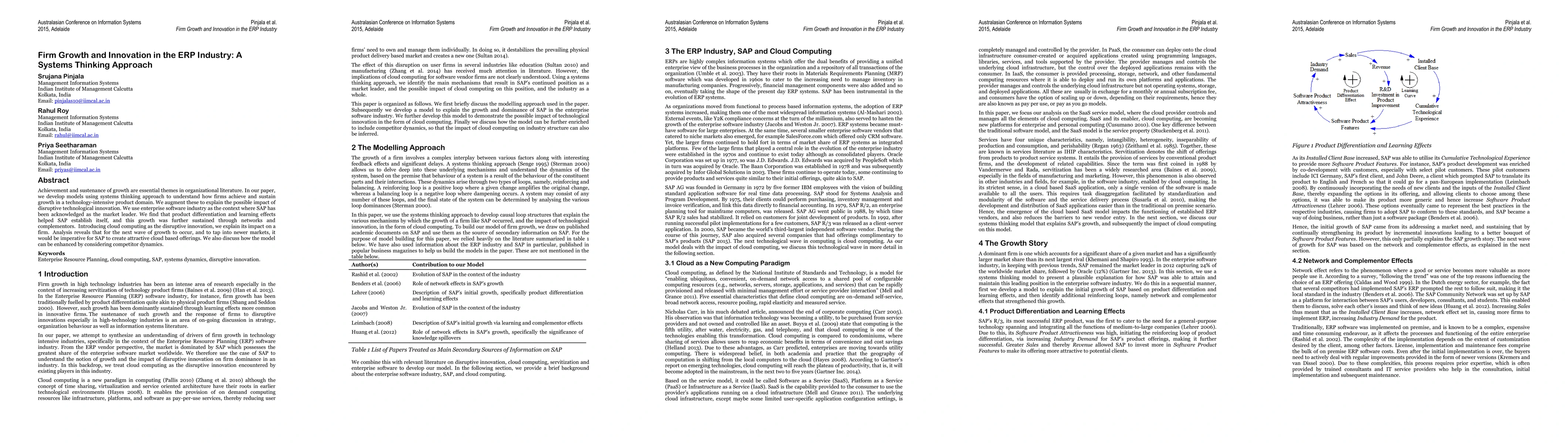 Achievement and sustenance of growth are essential themes in organizational literature. In our paper, we develop models using systems thinking approach to understand how firms achieve and sustain growth in a technology-intensive product domain. We augment these to explain the possible impact of a disruptive technological innovation. We use enterprise software industry as the context where SAP has been acknowledged as the market leader. We find that product differentiation and learning effects helped SAP establish itself, and this growth was further sustained through networks and complementors. Introducing cloud computing as the disruptive innovation, we explain its impact on a firm. Analysis reveals that for the next wave of growth to occur, and to tap into newer markets, it would be imperative for SAP to create attractive cloud based offerings. We also discuss how the model can be enhanced by considering competitor dynamics.