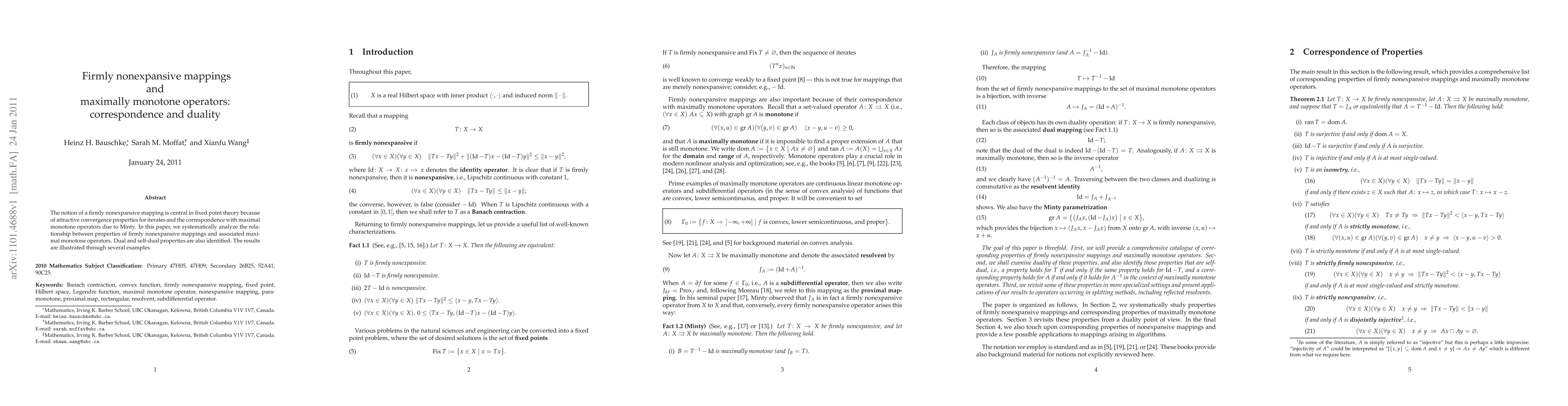 This paper systematically explores the relationship between firmly nonexpansive mappings and maximally monotone operators, highlighting their correspondence and duality, and illustrating the findings with various examples. Dual properties of these mappings and operators are also identified.