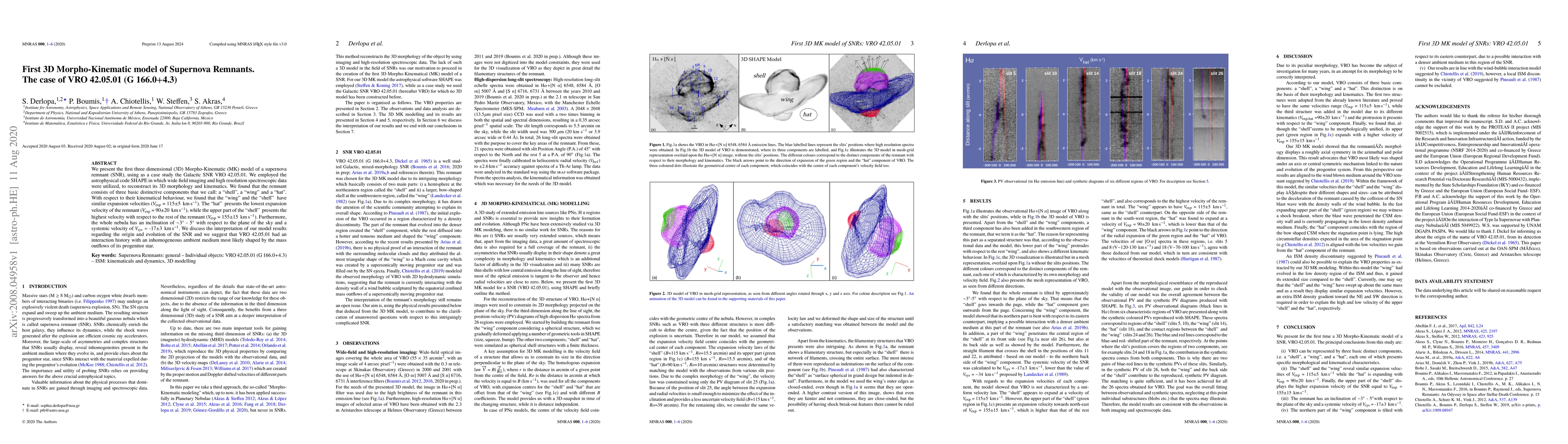 This paper presents the first 3D Morpho-Kinematic model of the supernova remnant VRO 42.05.01, revealing three components: a "shell", a "wing", and a "hat", with varying expansion velocities and an inclination of 3°-5°. The study suggests the remnant's evolution was influenced by interactions with an inhomogeneous medium.