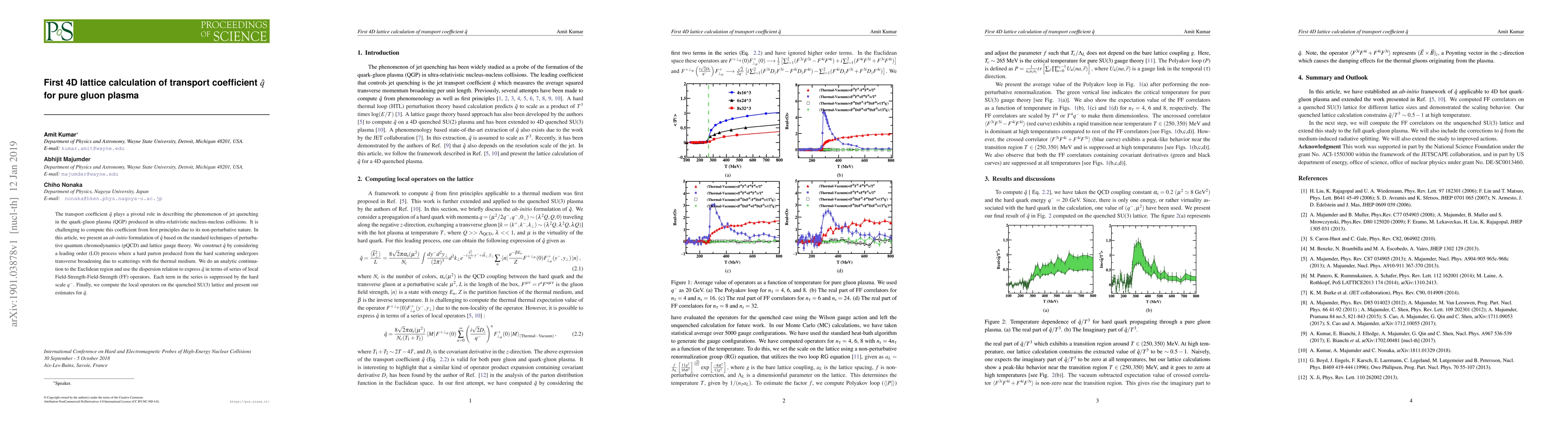 This paper presents an $ab$-$initio$ calculation of the transport coefficient $\hat{q}$ in pure gluon plasma using perturbative quantum chromodynamics and lattice gauge theory. The authors compute $\hat{q}$ through a leading order process involving transverse broadening and express it in terms of local field-strength operators, ultimately estimating $\hat{q}$ on a quenched SU(3) lattice.