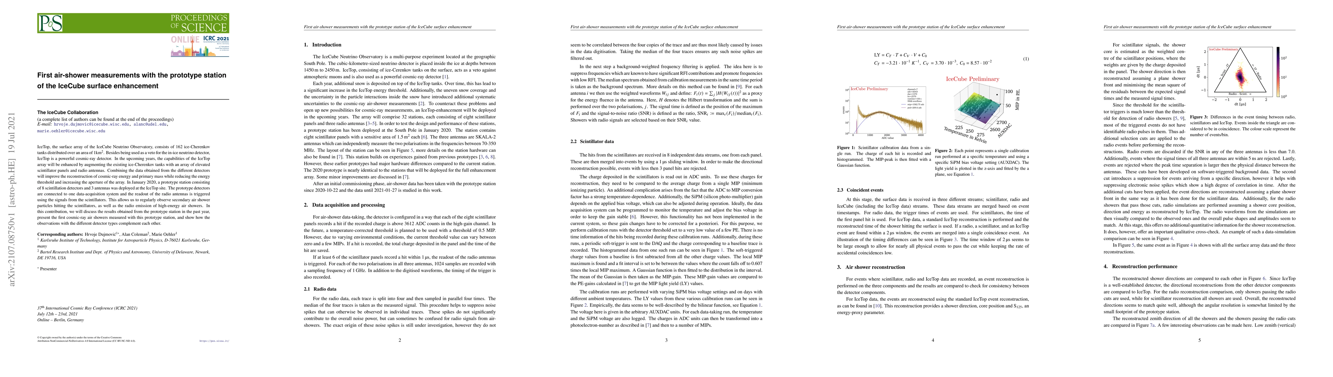 This paper reports on the first air-shower measurements using the prototype station of the IceTop array, which includes 8 scintillation detectors and 3 radio antennas. The results demonstrate the potential of combining different detection methods to enhance cosmic-ray energy and mass reconstruction.