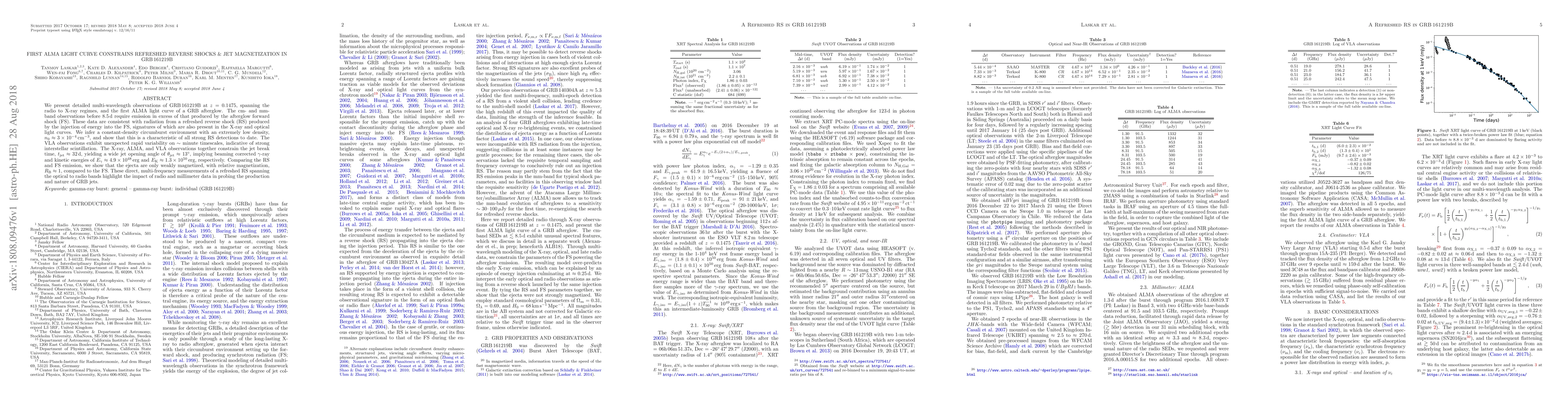We present detailed multi-wavelength observations of GRB 161219B at $z=0.1475$, spanning the radio to X-ray regimes, and the first ALMA light curve of a GRB afterglow. The cm- and mm-band observations before $8.5$ d require emission in excess of that produced by the afterglow forward shock (FS). These data are consistent with radiation from a refreshed reverse shock (RS) produced by the injection of energy into the FS, signatures of which are also present in the X-ray and optical light curves. We infer a constant-density circumburst environment with an extremely low density, $n_0\approx 3\times10^{-4}$ cm$^{-3}$ and show that this is a characteristic of all strong RS detections to date. The VLA observations exhibit unexpected rapid variability on $\sim$ minute timescales, indicative of strong interstellar scintillation. The X-ray, ALMA, and VLA observations together constrain the jet break time, $t_{\rm jet}\approx32$ day, yielding a wide jet opening angle of $\theta_{\rm jet}\approx13^{\circ}$, implying beaming corrected $\gamma$-ray and kinetic energies of $E_{\gamma}\approx4.9\times10^{48}$ erg and $E_{\rm K}\approx1.3\times10^{50}$ erg, respectively. Comparing the RS and FS emission, we show that the ejecta are only weakly magnetized, with relative magnetization, $R_{\rm B}\approx1$, compared to the FS. These direct, multi-frequency measurements of a refreshed RS spanning the optical to radio bands highlight the impact of radio and millimeter data in probing the production and nature of GRB jets.