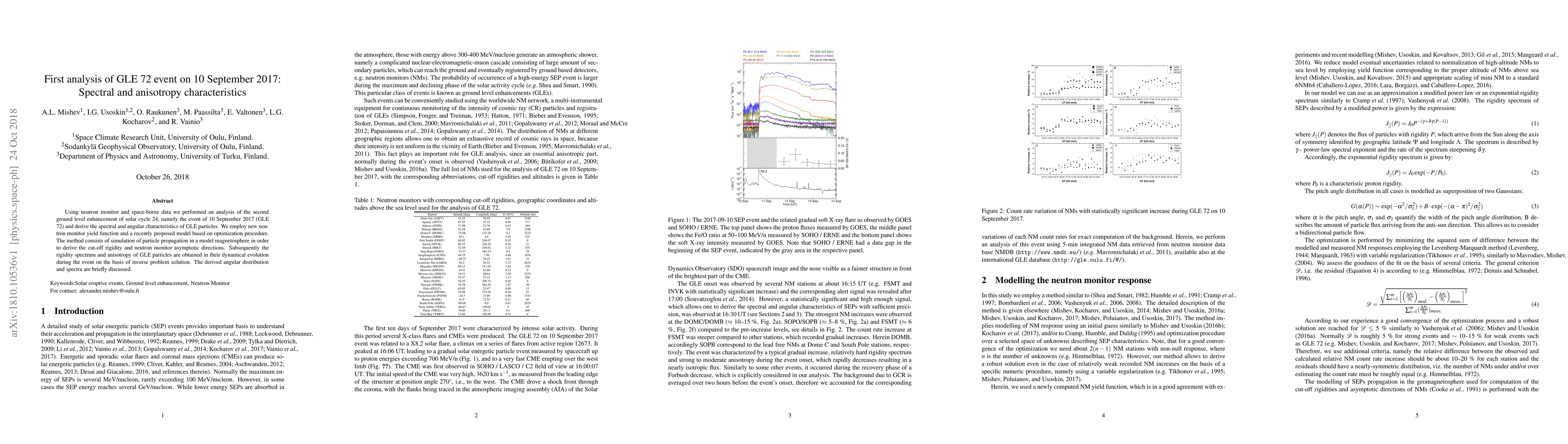 Using neutron monitor and space-borne data we performed an analysis of the second ground level enhancement of solar cycle 24, namely the event of 10 September 2017 (GLE 72) and derive the spectral and angular characteristics of GLE particles. We employ new neutron monitor yield function and a recently proposed model based on optimization procedure. The method consists of simulation of particle propagation in a model magnetosphere in order to derive the cut-off rigidity and neutron monitor asymptotic directions. Subsequently the rigidity spectrum and anisotropy of GLE particles are obtained in their dynamical evolution during the event on the basis of inverse problem solution. The derived angular distribution and spectra are briefly discussed.
