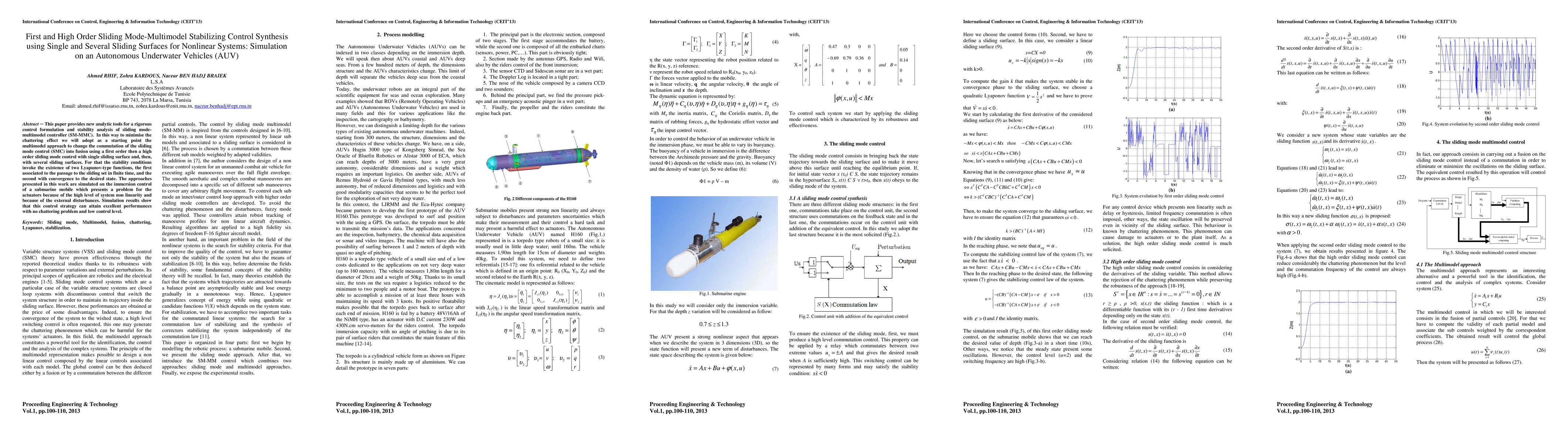 This paper provides new analytic tools for a rigorous control formulation and stability analysis of sliding mode-multimodel controller (SM-MMC). In this way to minimise the chattering effect we will adopt as a starting point the multimodel approach to change the commutation of the sliding mode control (SMC) into fusion using a first order then a high order sliding mode control with single sliding surface and, then, with several sliding surfaces. For that the stability conditions invoke the existence of two Lyapunov-type functions, the first associated to the passage to the sliding set in finite time, and the second with convergence to the desired state. The approaches presented in this work are simulated on the immersion control of a submarine mobile which presents a problem for the actuators because of the high level of system non linearity and because of the external disturbances. Simulation results show that this control strategy can attain excellent performances with no chattering problem and low control level.