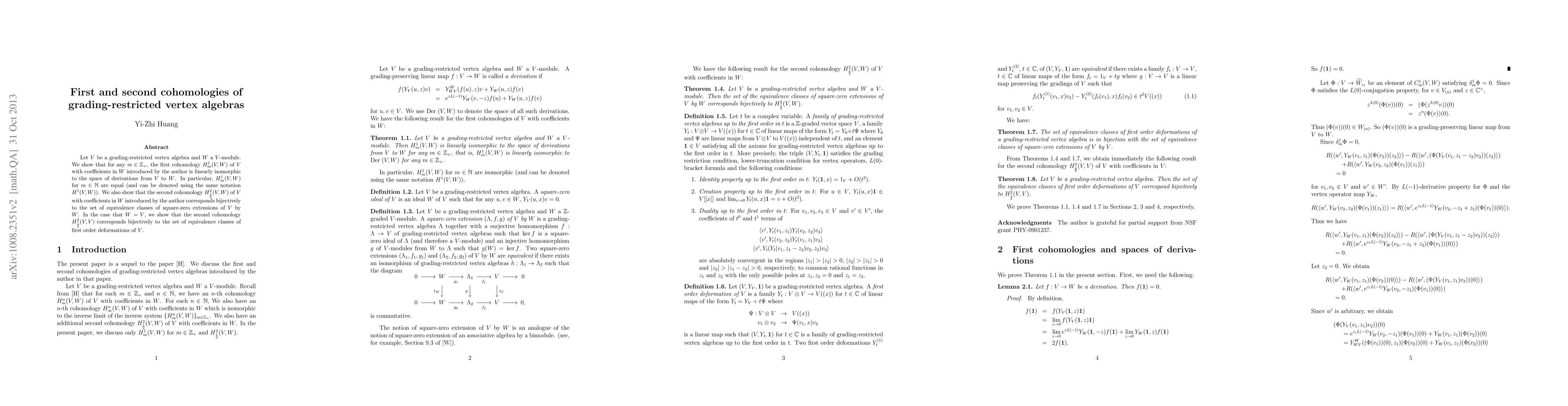 The paper establishes connections between cohomologies of grading-restricted vertex algebras and derivations, showing linear isomorphisms that link first and second cohomologies to specific sets of mathematical structures.