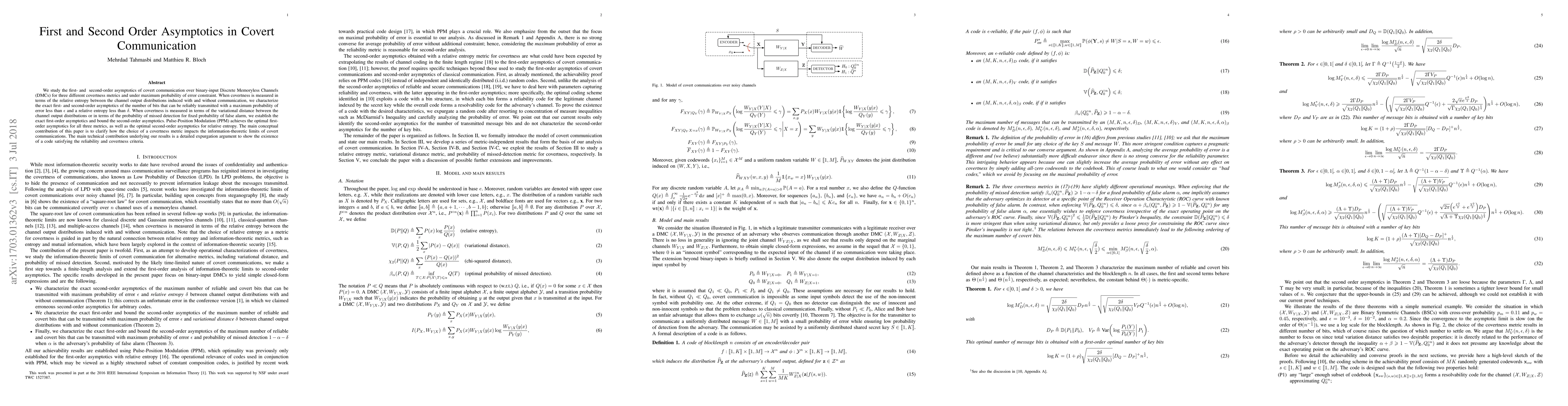 We study the first- and second-order asymptotics of covert communication over binary-input DMC for three different covertness metrics and under maximum probability of error constraint. When covertness is measured in terms of the relative entropy between the channel output distributions induced with and without communication, we characterize the exact first- and second-order asymptotics of the number of bits that can be reliably transmitted with a maximum probability of error less than $\epsilon$ and a relative entropy less than $\delta$. When covertness is measured in terms of the variational distance between the channel output distributions or in terms of the probability of missed detection for fixed probability of false alarm, we establish the exact first-order asymptotics and bound the second-order asymptotics. PPM achieves the optimal first-order asymptotics for all three metrics, as well as the optimal second-order asymptotics for relative entropy. The main conceptual contribution of this paper is to clarify how the choice of a covertness metric impacts the information-theoretic limits of covert communications. The main technical contribution underlying our results is a detailed expurgation argument to show the existence of a code satisfying the reliability and covertness criteria.