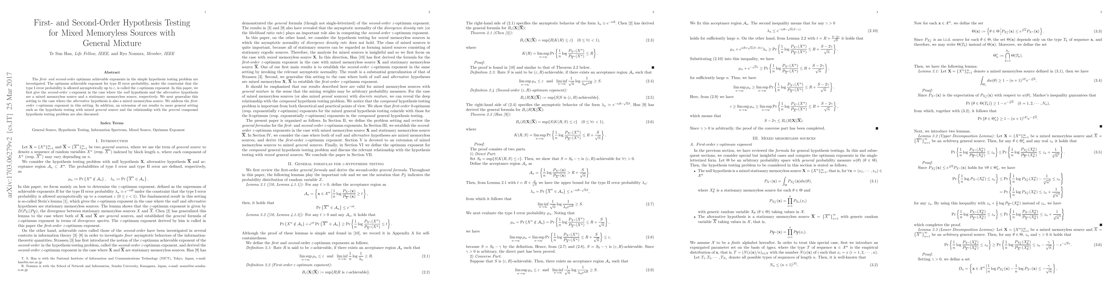 This paper investigates the first- and second-order optimum achievable exponents in hypothesis testing for mixed memoryless sources. It provides the second-order epsilon-exponent for mixed memoryless sources under different hypotheses and generalizes the results to mixed general sources.