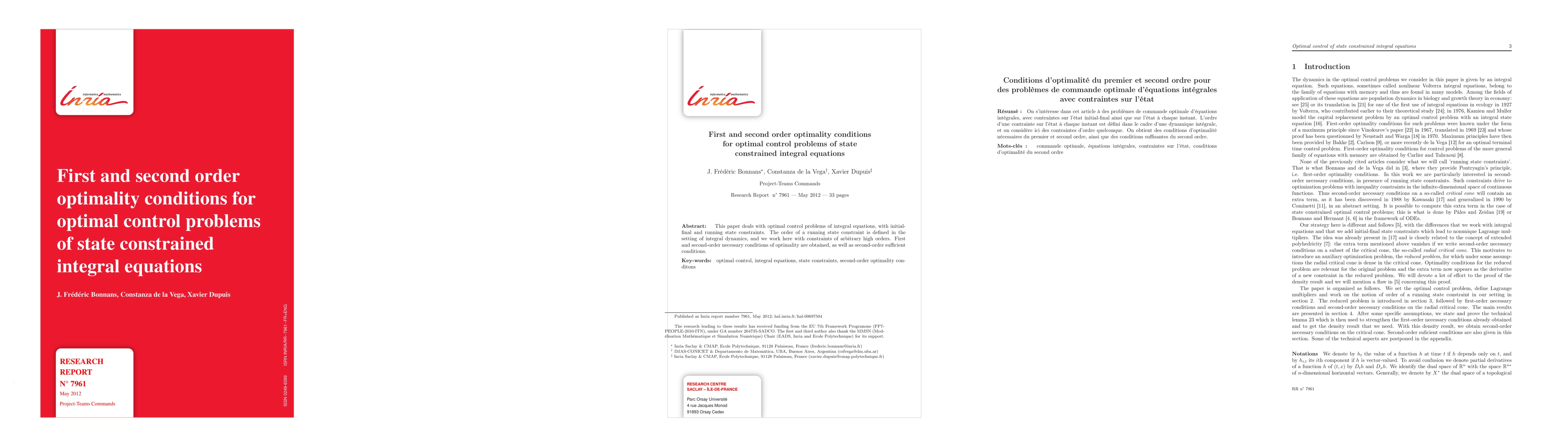 This paper establishes first and second-order necessary and sufficient optimality conditions for optimal control problems involving state-constrained integral equations, including high-order running state constraints. It provides comprehensive mathematical frameworks for solving these complex control problems.