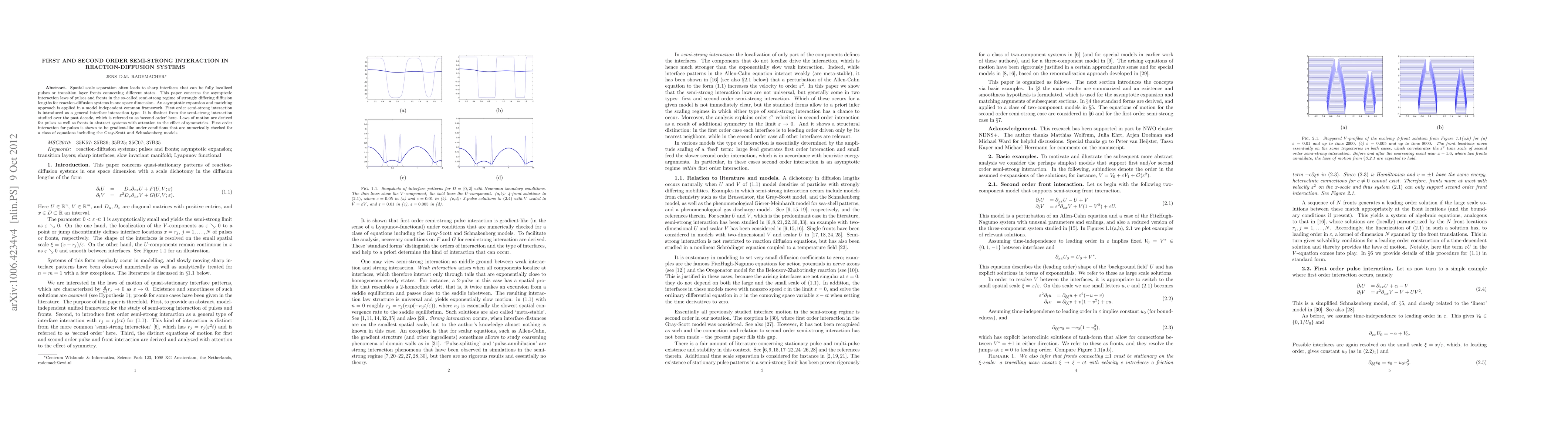 Researchers explore how different types of interfaces interact in reaction-diffusion systems, finding a new type of semi-strong interaction that affects pulse and front behavior.