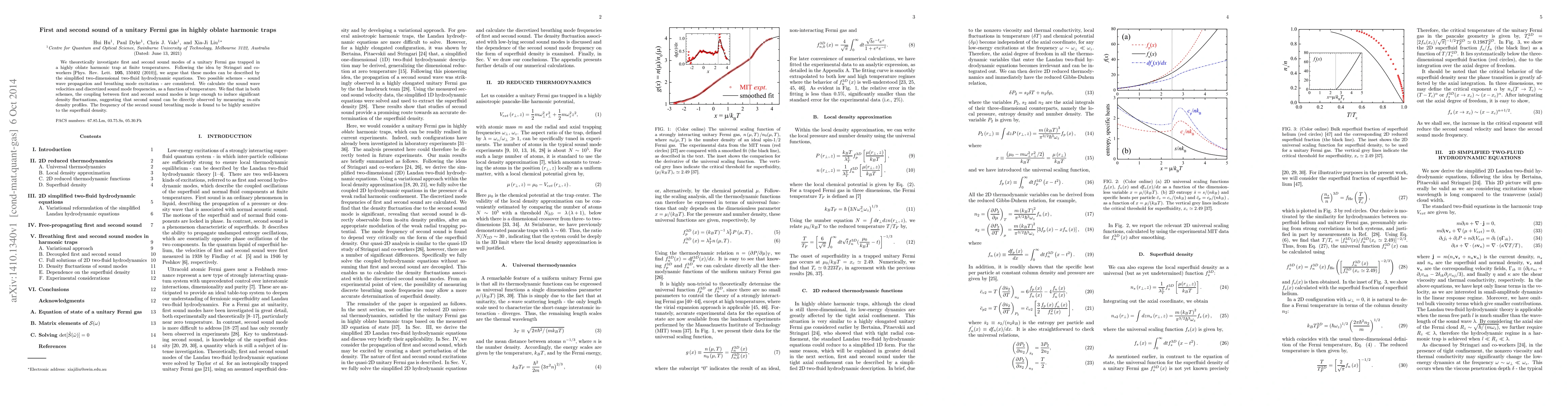 This paper investigates first and second sound modes in a unitary Fermi gas within a highly oblate harmonic trap at finite temperatures. It finds significant coupling between these modes, suggesting observable second sound through density profiles, with the breathing mode frequency being sensitive to the superfluid density.