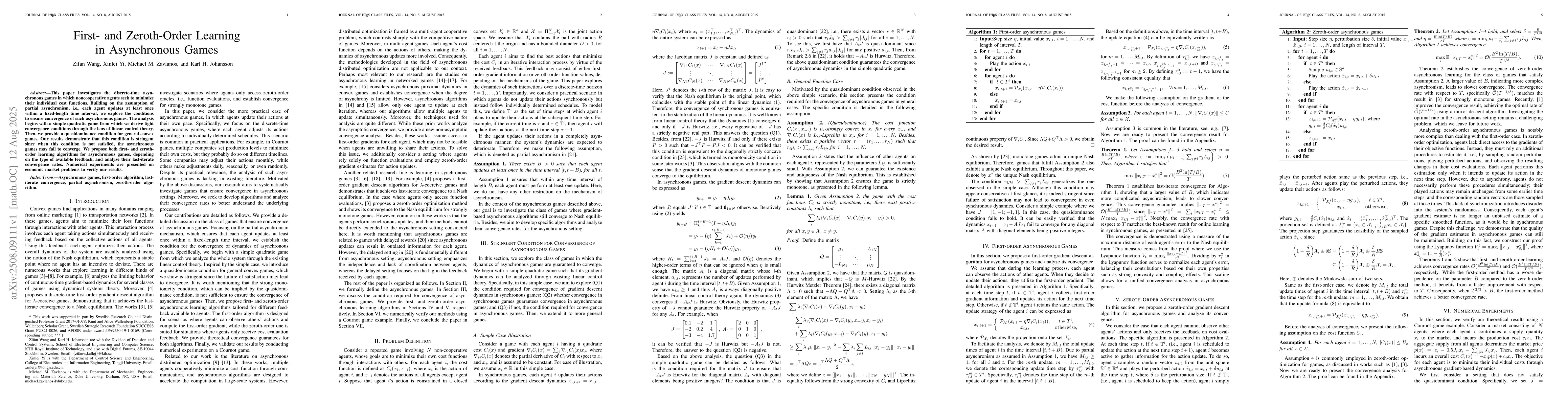 This paper investigates the discrete-time asynchronous games in which noncooperative agents seek to minimize their individual cost functions. Building on the assumption of partial asynchronism, i.e., each agent updates at least once within a fixed-length time interval, we explore the conditions to ensure convergence of such asynchronous games. The analysis begins with a simple quadratic game from which we derive tight convergence conditions through the lens of linear control theory. Then, we provide a quasidominance condition for general convex games. Our results demonstrate that this condition is stringent since when this condition is not satisfied, the asynchronous games may fail to converge. We propose both first- and zeroth-order learning algorithms for asynchronous games, depending on the type of available feedback, and analyze their last-iterate convergence rates. Numerical experiments are presented on economic market problems to verify our results.