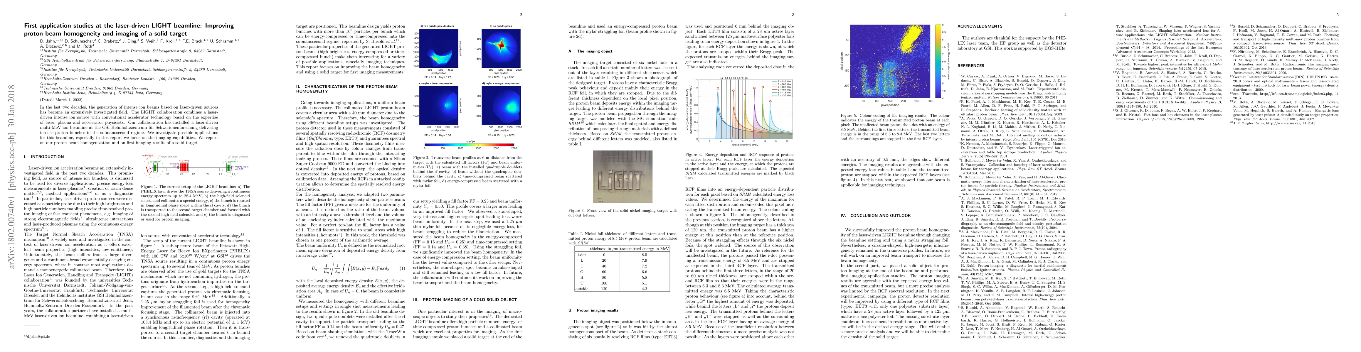 This paper details the first application studies of a laser-driven LIGHT beamline, focusing on improving proton beam homogeneity and imaging solid targets. Initial results show promising proton beam homogenization and successful imaging capabilities.