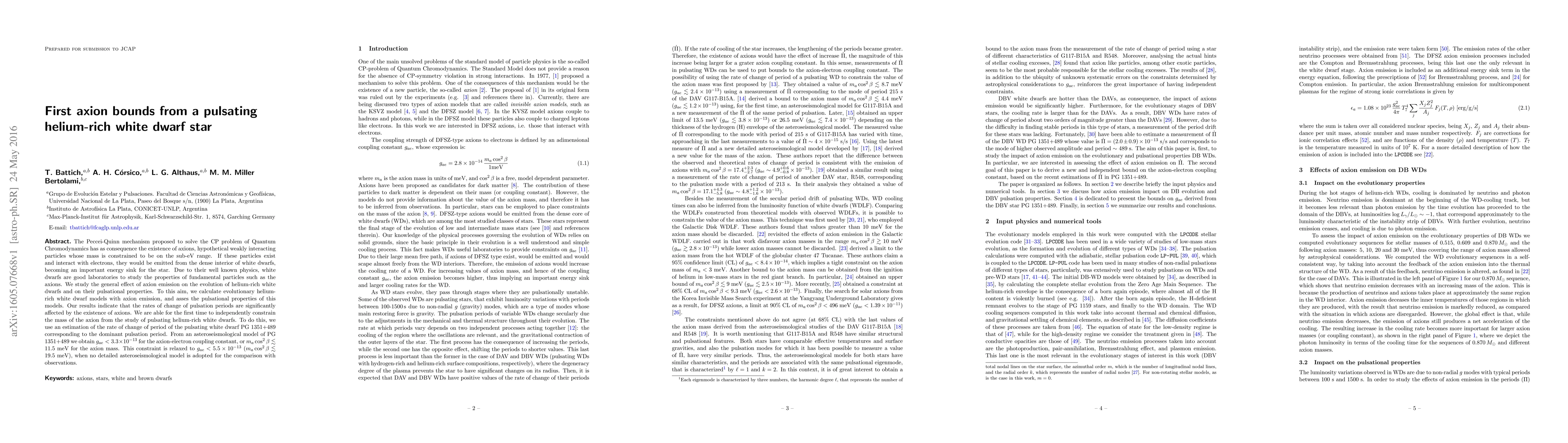 Researchers constrain axion mass for the first time using pulsating helium-rich white dwarf stars, finding an upper limit of 11.5 meV.