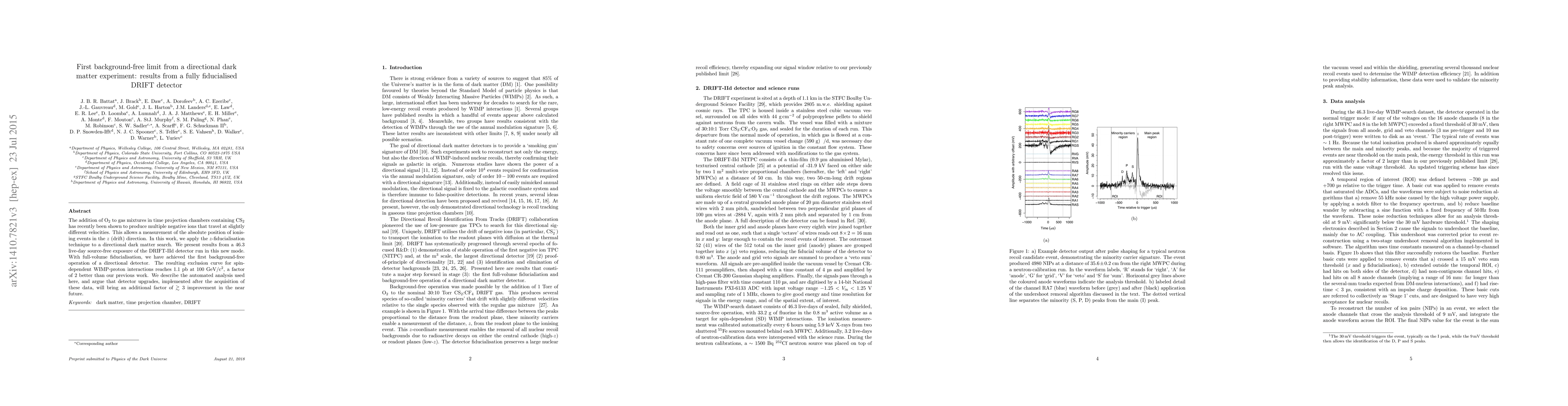 The addition of O2 to gas mixtures in time projection chambers containing CS2 has recently been shown to produce multiple negative ions that travel at slightly different velocities. This allows a measurement of the absolute position of ionising events in the z (drift) direction. In this work, we apply the z-fiducialisation technique to a directional dark matter search. In particular, we present results from a 46.3 live-day source-free exposure of the DRIFT-IId detector run in this completely new mode. With full-volume fiducialisation, we have achieved the first background-free operation of a directional detector. The resulting exclusion curve for spin-dependent WIMP-proton interactions reaches 1.1 pb at 100 GeV/c2, a factor of 2 better than our previous work. We describe the automated analysis used here, and argue that detector upgrades, implemented after the acquisition of these data, will bring an additional factor of >3 improvement in the near future.