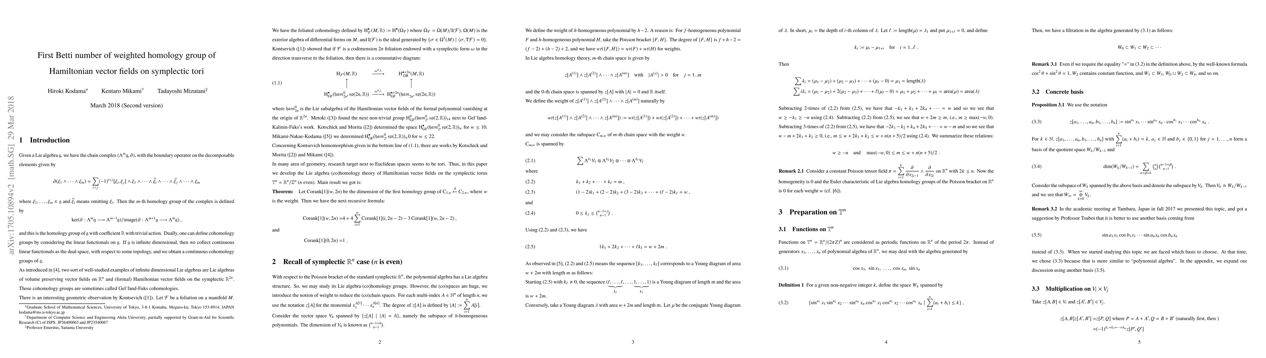 Like (co)homology group theory of formal Hamiltonian vector fields on symplectic vector spaces, we try studying homology group theory on symplecit tori introducing the notion of weight.