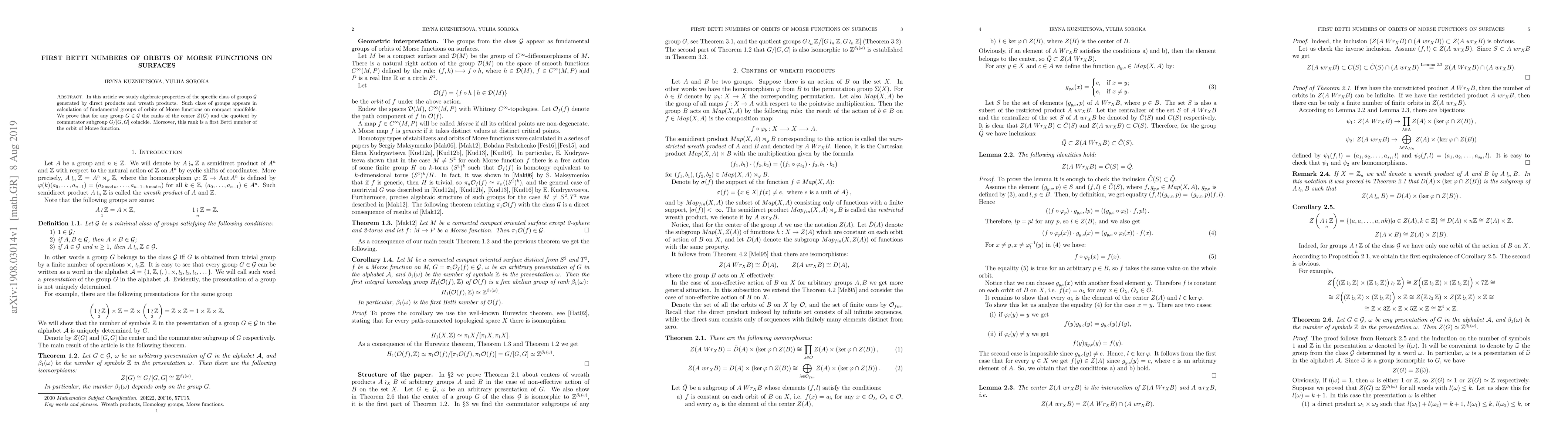 This paper investigates the algebraic structure of groups $\mathcal{G}$ derived from direct and wreath products, which relate to the fundamental groups of Morse function orbits on surfaces. It proves that the rank of the center of any group $G\in\mathcal{G}$ equals the rank of its quotient by the commutator subgroup, both of which equal the first Betti number of the orbit.