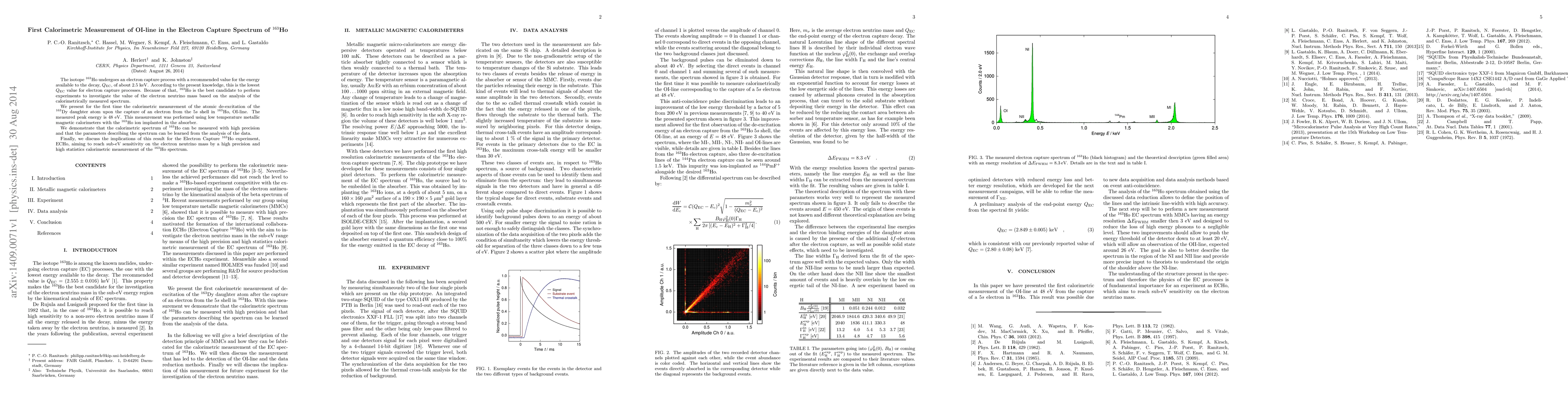 The research used a new data acquisition and analysis method based on event anti-coincidence to measure the OI-line at 48 eV from the capture of a 5 selectron in 163Ho.