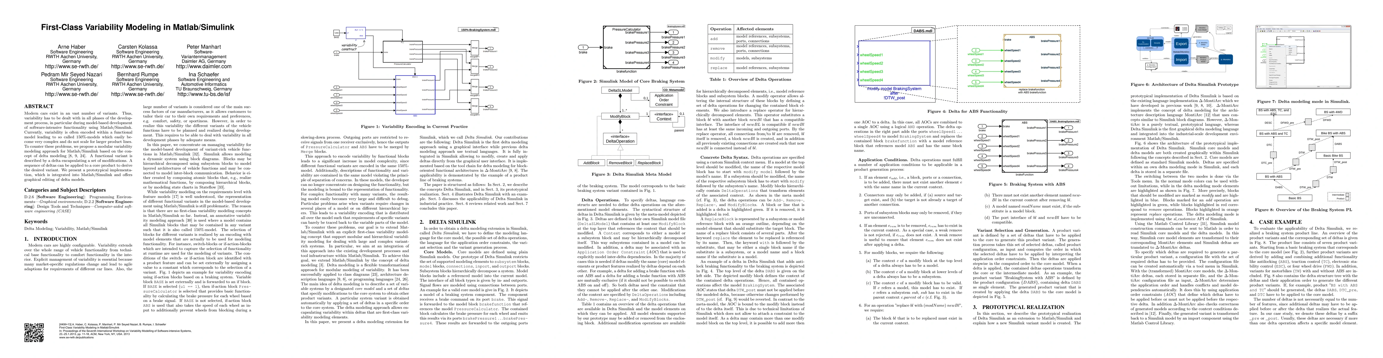 This paper proposes a modular variability modeling approach for Matlab/Simulink to manage the complexity of modern car variants. It introduces delta modeling to encapsulate modifications, enabling scalable and manageable product line development.