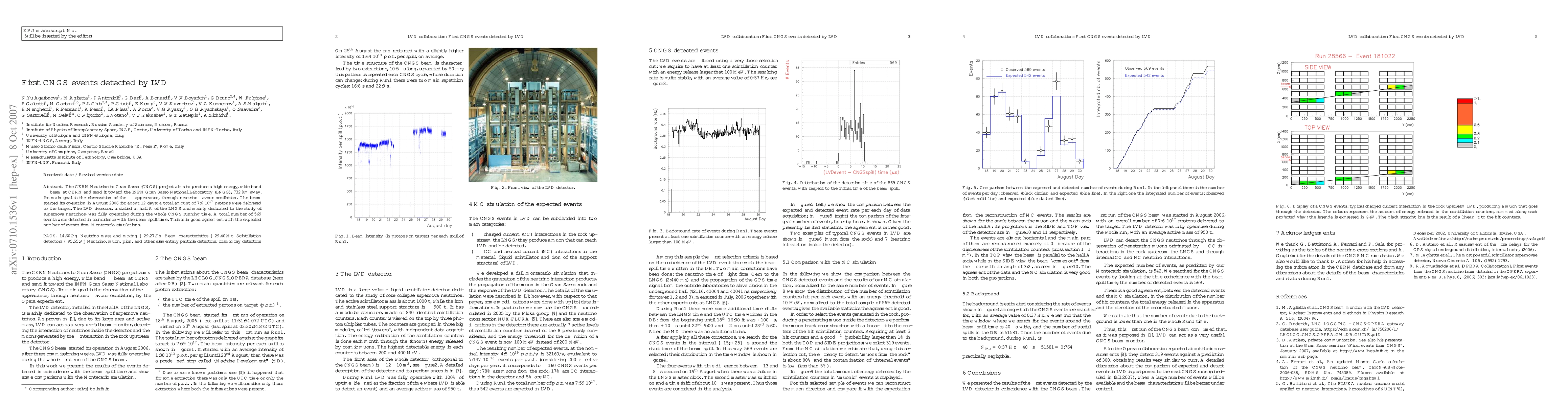 The CERN Neutrino to Gran Sasso (CNGS) project aims to produce a high energy, wide band $\nu_{\mu}$ beam at CERN and send it toward the INFN Gran Sasso National Laboratory (LNGS), 732 km away. Its main goal is the observation of the $\nu_{\tau}$ appearance, through neutrino flavour oscillation. The beam started its operation in August 2006 for about 12 days: a total amount of $7.6~10^{17}$ protons were delivered to the target. The LVD detector, installed in hall A of the LNGS and mainly dedicated to the study of supernova neutrinos, was fully operating during the whole CNGS running time. A total number of 569 events were detected in coincidence with the beam spill time. This is in good agreement with the expected number of events from Montecarlo simulations.