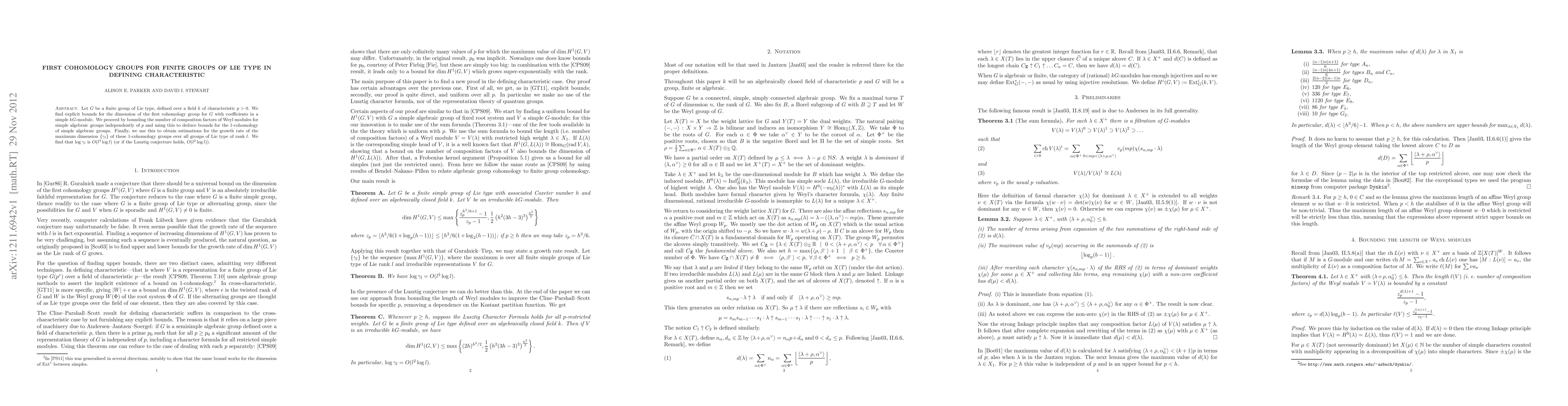 This paper finds explicit bounds for the dimension of the first cohomology group for finite groups of Lie type defined over fields of positive characteristic. It achieves this by estimating the number of composition factors of Weyl modules, leading to a growth rate estimate of log γ_l = O(l^3 log l), or O(l^2 log l) if the Lusztig conjecture holds.
