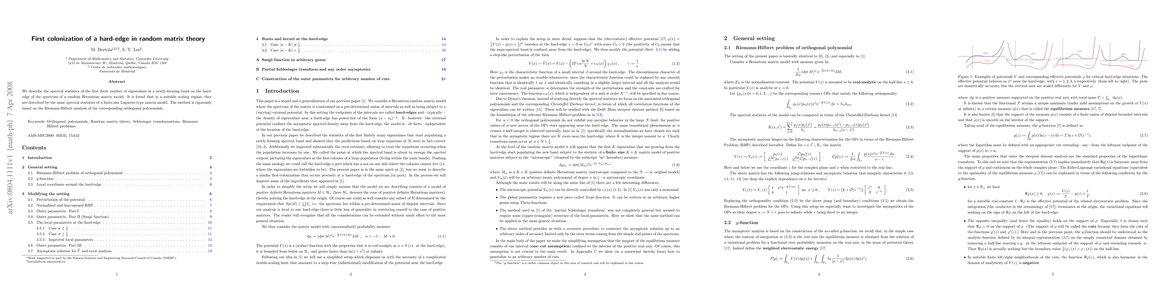 This paper investigates the spectral statistics of the first few eigenvalues in a newly-forming band near the hard-edge of a random Hermitian matrix, revealing they follow the same statistics as a finite-size Laguerre-type matrix model. The findings are rigorously derived using Riemann-Hilbert analysis of orthogonal polynomials.