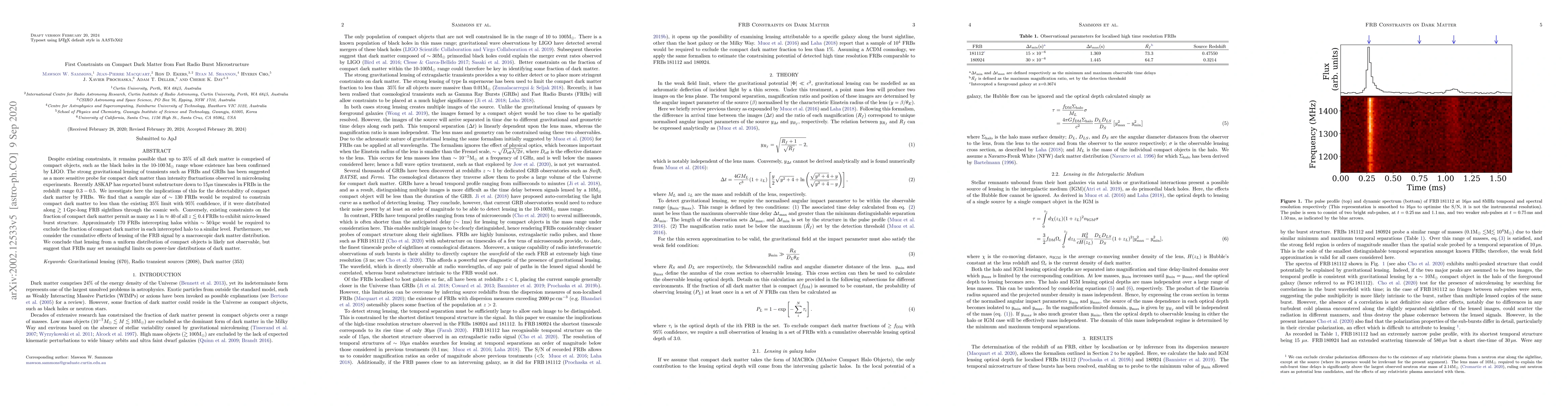 This paper investigates the potential of Fast Radio Bursts (FRBs) to constrain the presence of compact dark matter objects, such as black holes in the 10-100 M$_\odot$ range. It finds that a sample size of around 130 FRBs is needed to reduce existing constraints on compact dark matter to less than 35% with 95% confidence.