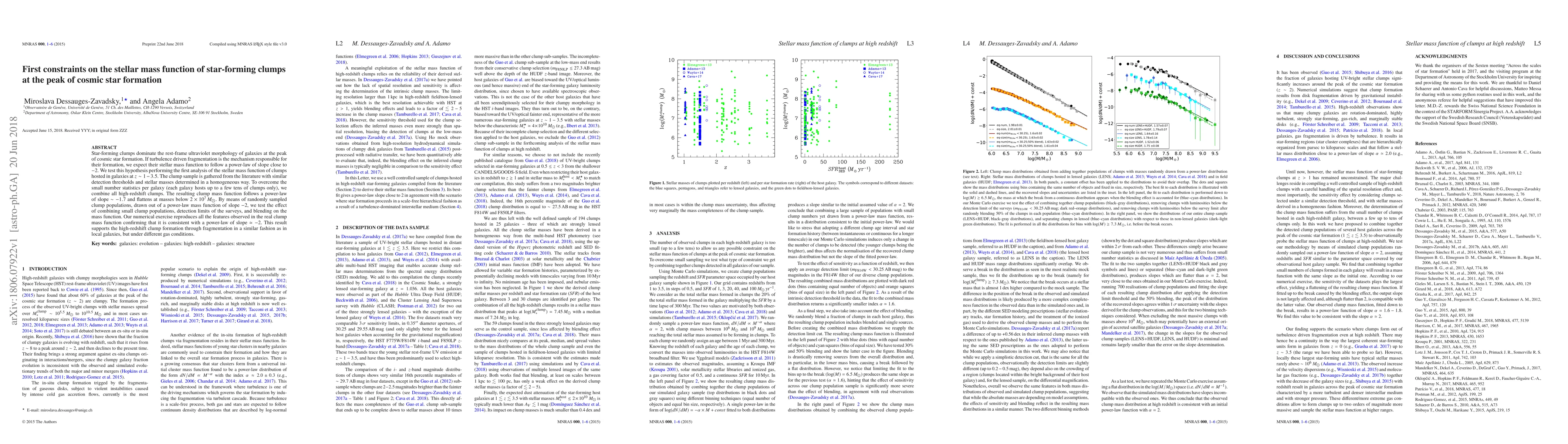 Researchers studied star-forming clumps in galaxies at high redshifts and found their stellar mass function to follow a power-law of slope around -1.7, supporting the idea that turbulence-driven fragmentation is the mechanism behind their formation.