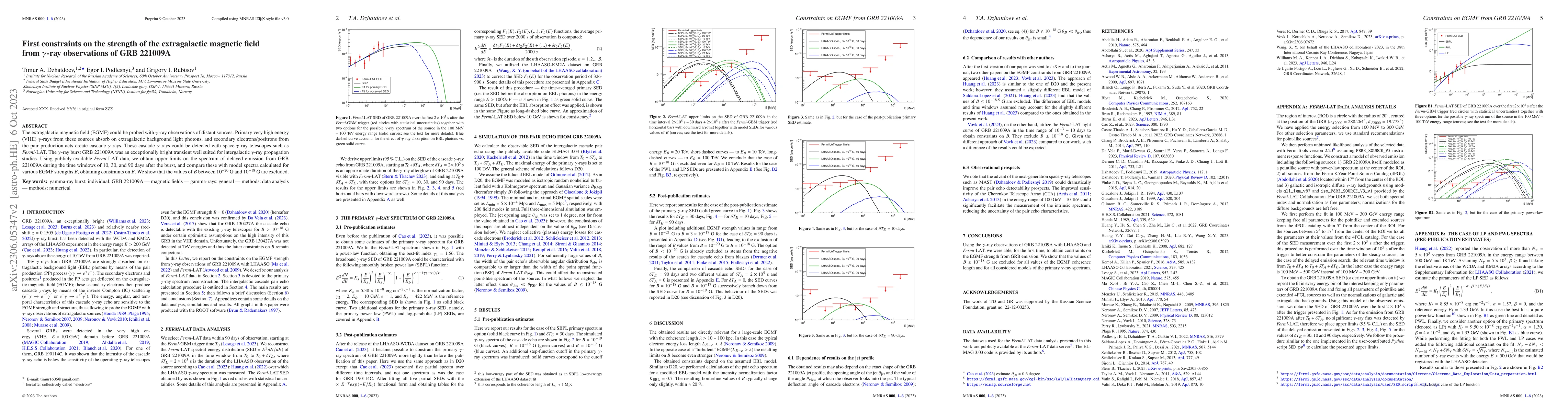 This paper provides the first constraints on the strength of the extragalactic magnetic field (EGMF) using $\gamma$-ray observations of the exceptionally bright GRB 221009A. The study excludes EGMF values between 10^{-20} G and 10^{-18} G based on upper limits from Fermi-LAT data.