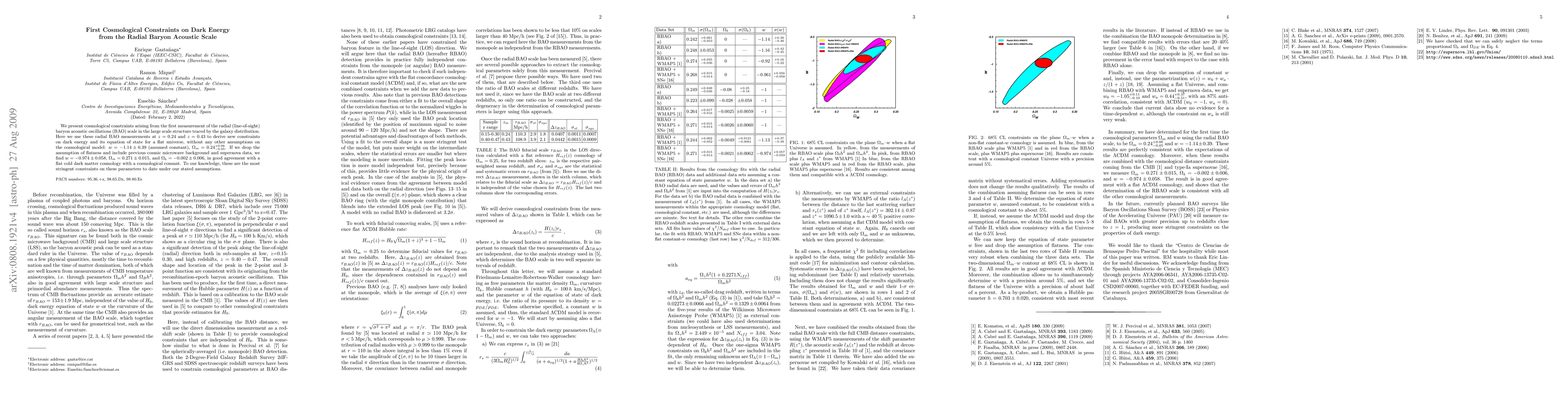This paper presents new cosmological constraints on dark energy derived from the first measurement of the radial baryon acoustic scale in galaxy distributions at z = 0.24 and z = 0.43, finding w = -1.14 +/- 0.39. Including additional data from cosmic microwave background and supernova measurements refines these constraints to w = -0.974 +/- 0.058, Omega_m = 0.271 +/- 0.015, and Omega_k = -0.002 +/- 0.006, consistent with a flat universe.