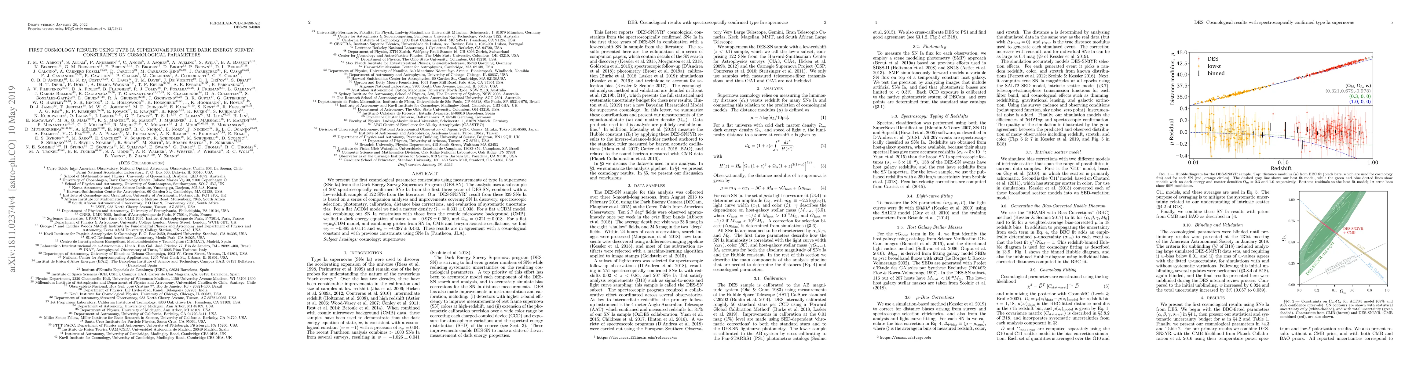 This paper presents cosmological parameter constraints from the Dark Energy Survey Supernova Program (DES-SN), using 207 type Ia supernovae (SNe Ia) and a low-redshift sample. The analysis yields a matter density of Ω_m = 0.331 ± 0.038 and a dark energy equation of state w = -0.978 ± 0.059, consistent with previous results.