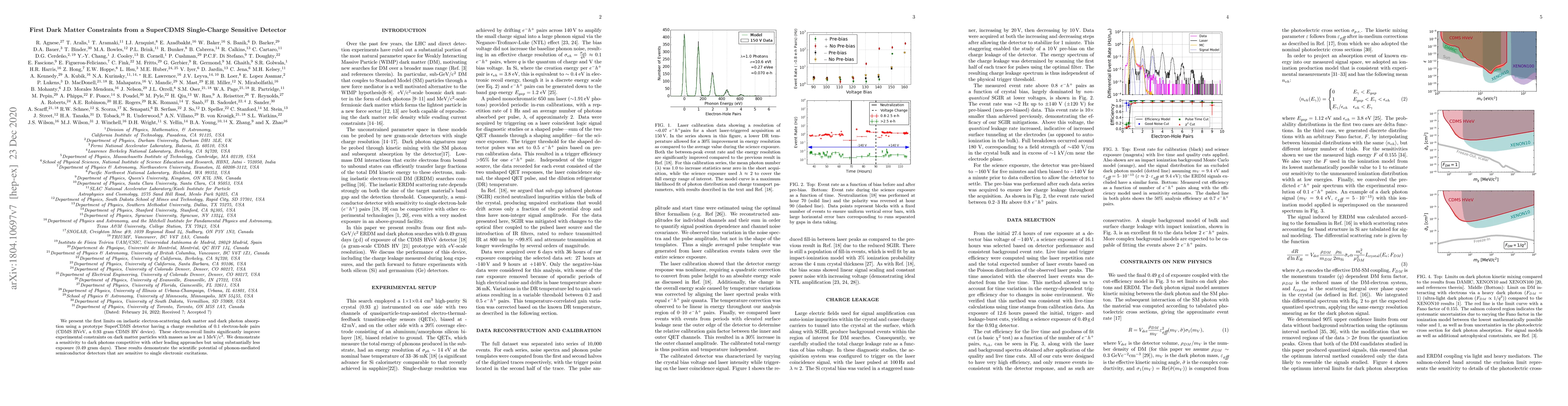 This paper presents the first constraints on dark matter particles using a SuperCDMS single-charge sensitive detector, significantly improving limits on electron-recoil interactions. The study demonstrates competitive sensitivity to dark photons with less exposure, showcasing the potential of phonon-mediated semiconductor detectors.