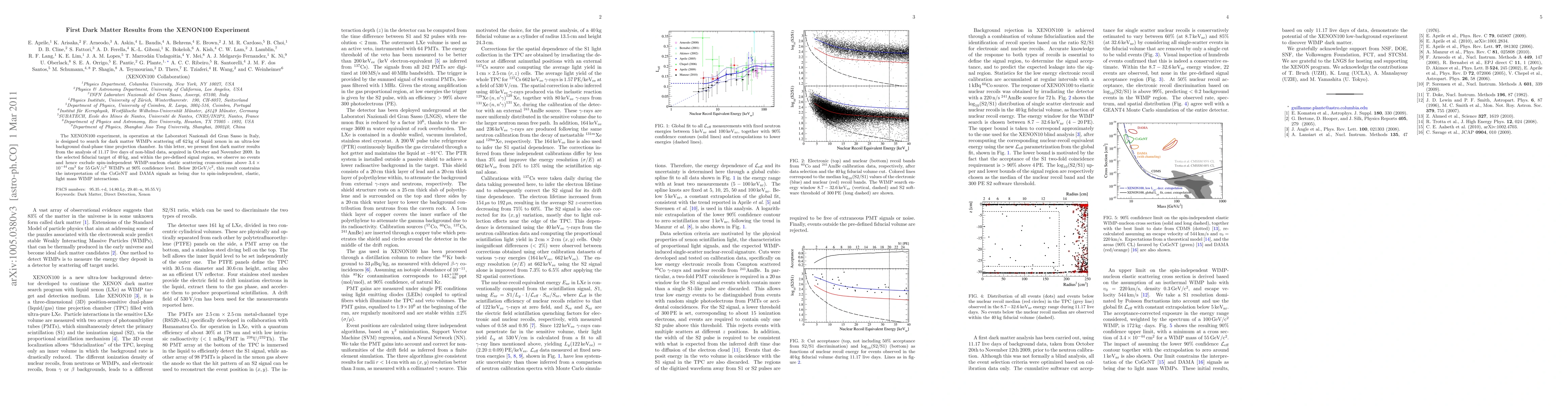 The XENON100 experiment reports its first dark matter results, observing no events in 11.17 live days of data, leading to exclusion of certain WIMP-nucleon scattering cross-sections and constraining interpretations of other dark matter signals.