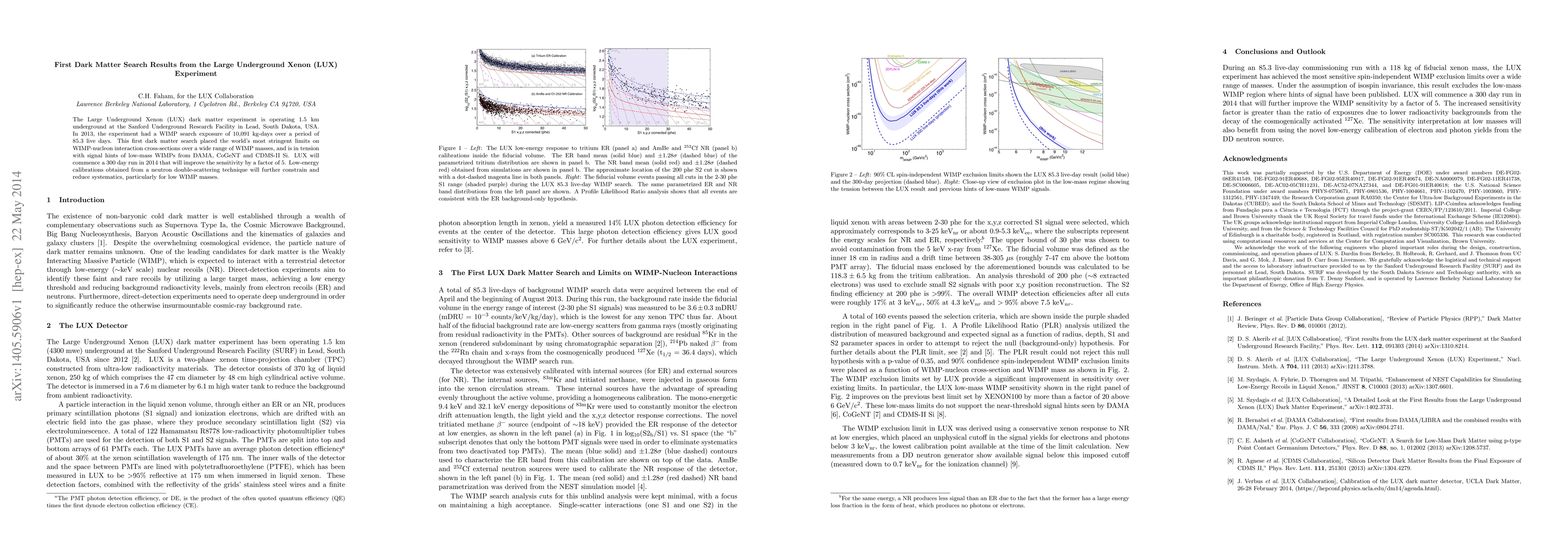 The LUX experiment set the most stringent limits on WIMP-nucleon interaction cross-sections in 2013, conflicting with previous low-mass WIMP signal hints. Future runs aim to enhance sensitivity and reduce systematic uncertainties.