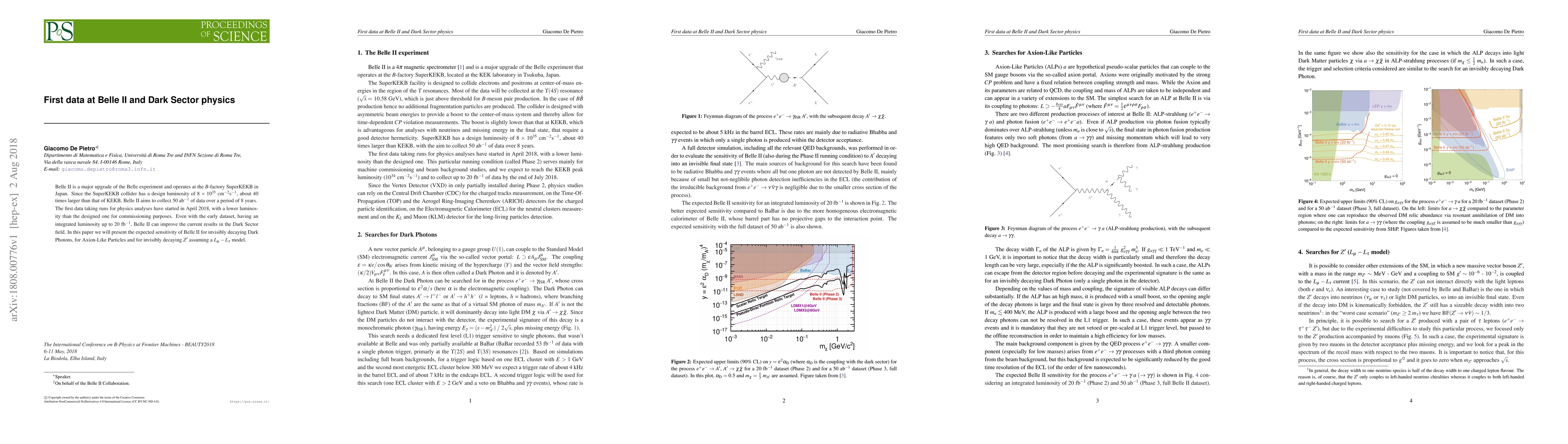 This paper reports on the initial data collected by Belle II, a significant upgrade of the Belle experiment at the SuperKEKB collider in Japan. It highlights the potential of Belle II to enhance research in the Dark Sector through analyses of invisibly decaying Dark Photons, Axion-Like Particles, and $Z^{\prime}$ bosons within a $L_{\mu}-L_{\tau}$ model.