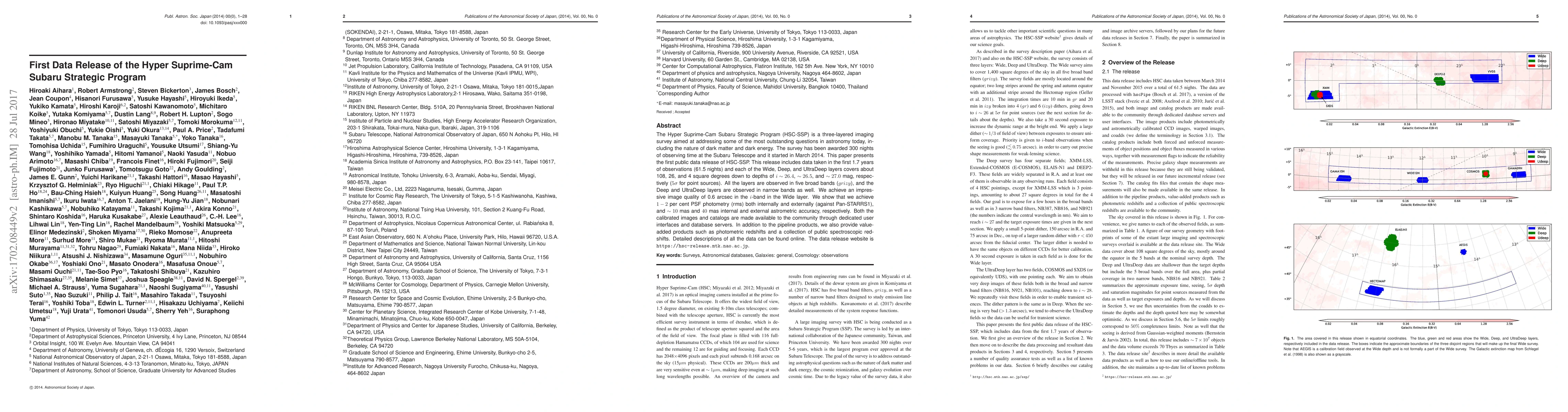 The first public data release from the Hyper Suprime-Cam Subaru Strategic Program (HSC-SSP) includes observations from the first 1.7 years, covering 108, 26, and 4 square degrees in Wide, Deep, and UltraDeep layers respectively, with impressive photometric and astrometric accuracy. The data are available online with value-added products like photometric redshifts.