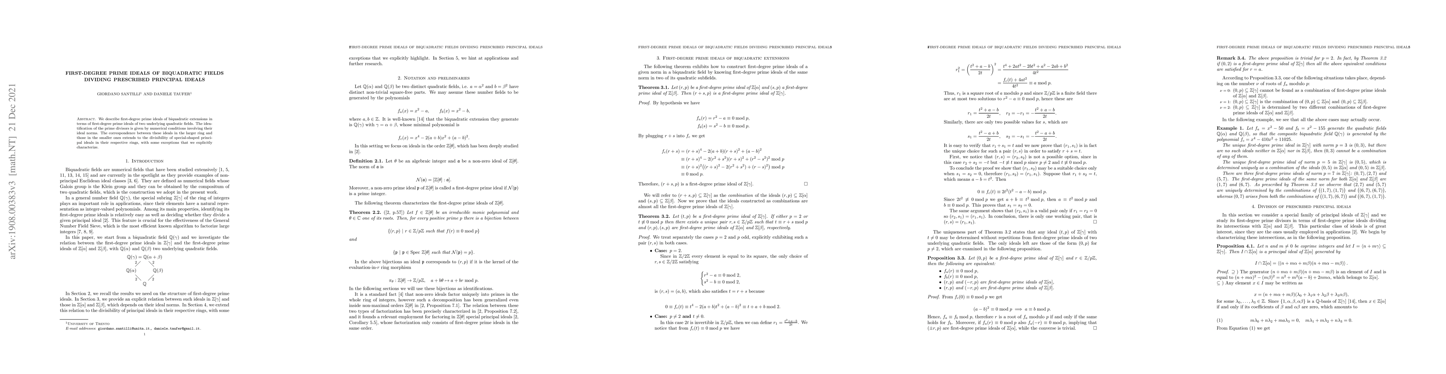 This paper identifies first-degree prime ideals in biquadratic fields by relating them to prime ideals in two underlying quadratic fields, using numerical conditions based on ideal norms. It also explores the divisibility of principal ideals across these rings, noting specific exceptions.