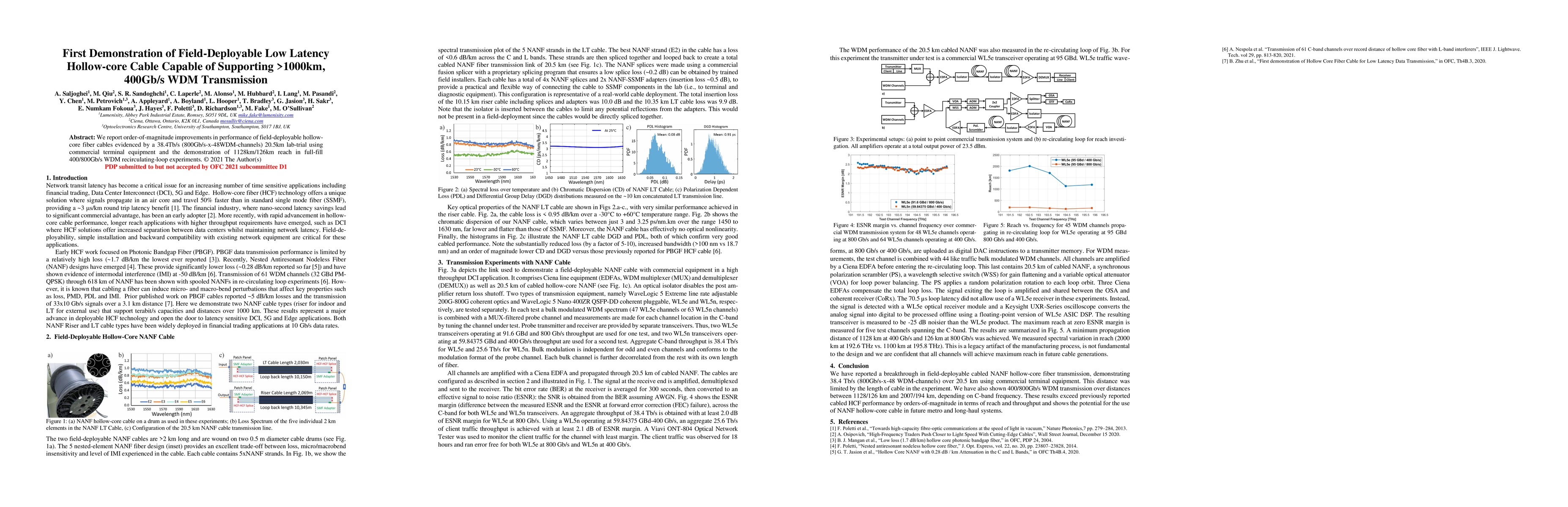 We report order-of-magnitude improvements in performance of field-deployable hollow-core fiber cables evidenced by a 38.4Tb/s (800Gb/s-x-48WDM-channels) 20.5km lab-trial using commercial terminal equipment and the demonstration of 1128km/126km reach in full-fill 400/800Gb/s WDM recirculating-loop experiments.