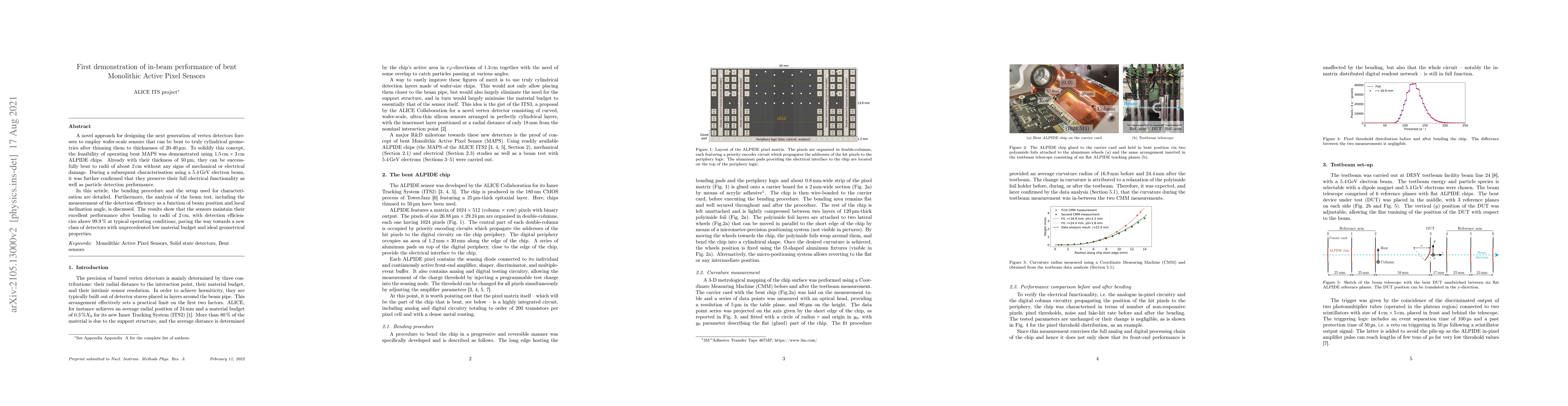 This paper demonstrates the successful bending of Monolithic Active Pixel Sensors (MAPS) to cylindrical geometries without mechanical or electrical damage, and confirms their full functionality and particle detection performance during a 5.4GeV electron beam test. The results indicate high detection efficiency above 99.9%, indicating the potential for next-generation low-material vertex detectors.