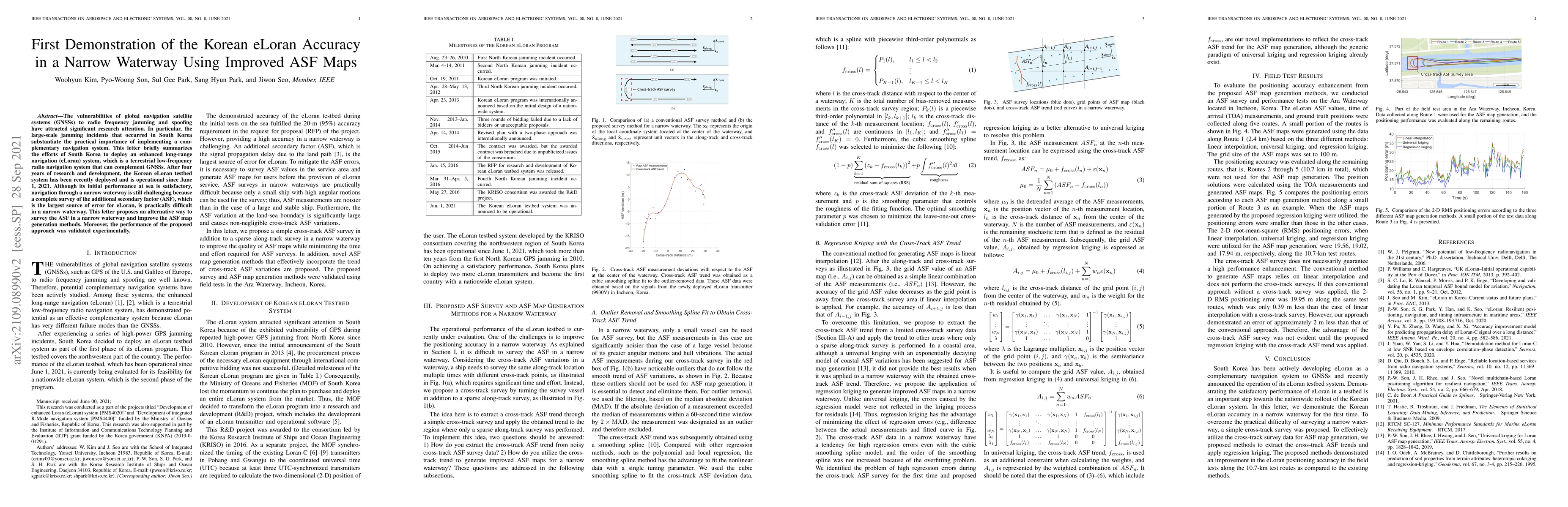The vulnerabilities of global navigation satellite systems (GNSSs) to radio frequency jamming and spoofing have attracted significant research attention. In particular, the large-scale jamming incidents that occurred in South Korea substantiate the practical importance of implementing a complementary navigation system. This letter briefly summarizes the efforts of South Korea to deploy an enhanced long-range navigation (eLoran) system, which is a terrestrial low-frequency radio navigation system that can complement GNSSs. After four years of research and development, the Korean eLoran testbed system has been recently deployed and is operational since June 1, 2021. Although its initial performance at sea is satisfactory, navigation through a narrow waterway is still challenging because a complete survey of the additional secondary factor (ASF), which is the largest source of error for eLoran, is practically difficult in a narrow waterway. This letter proposes an alternative way to survey the ASF in a narrow waterway and improve the ASF map generation methods. Moreover, the performance of the proposed approach was validated experimentally.