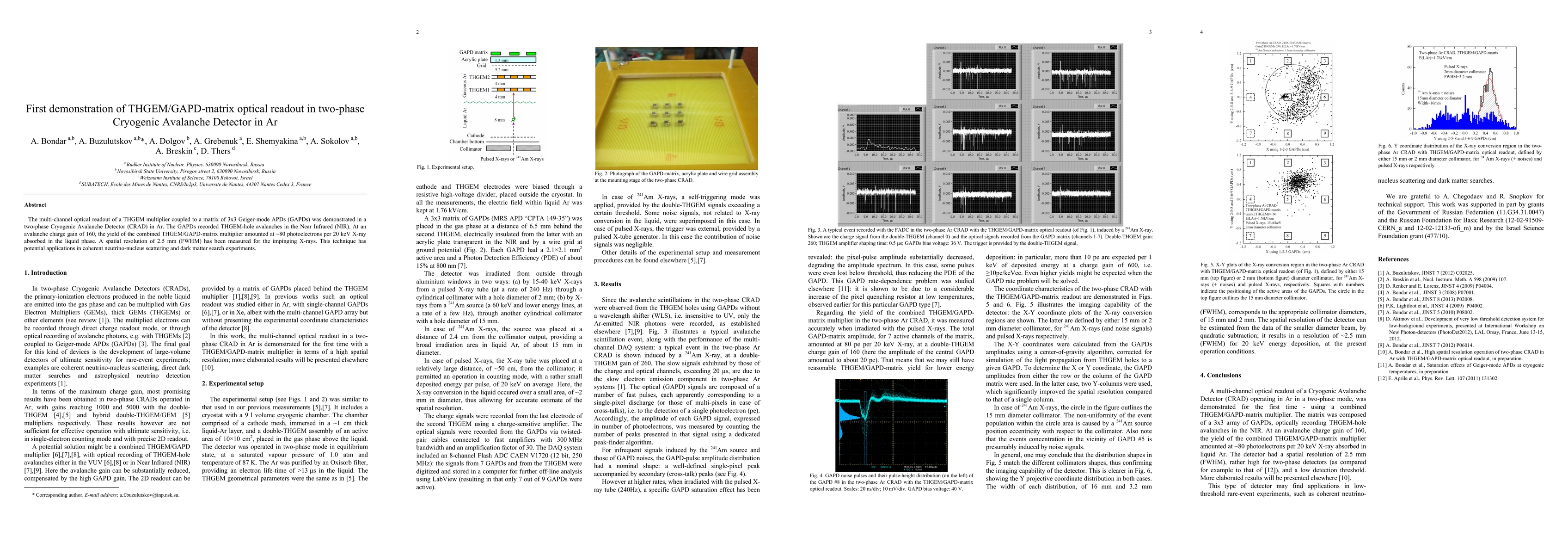 This paper demonstrates a multi-channel optical readout system using THGEM multipliers coupled with a 3x3 matrix of Geiger-mode APDs in a cryogenic Ar-based detector, achieving a spatial resolution of 2.5 mm and ~80 photoelectrons per 20 keV X-ray. This technique shows promise for applications in neutrino and dark matter research.