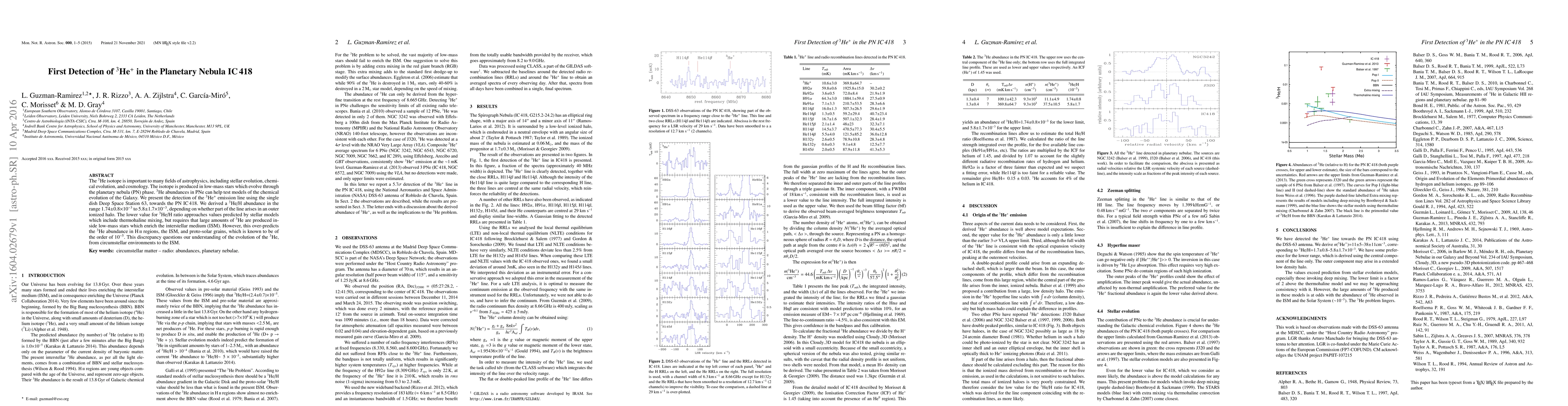 This study presents the first detection of $^3$He$^+$ in a planetary nebula, IC 418, and derives its abundance, challenging existing models of stellar evolution and chemical enrichment in the Galaxy.
